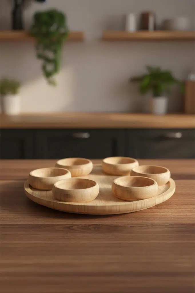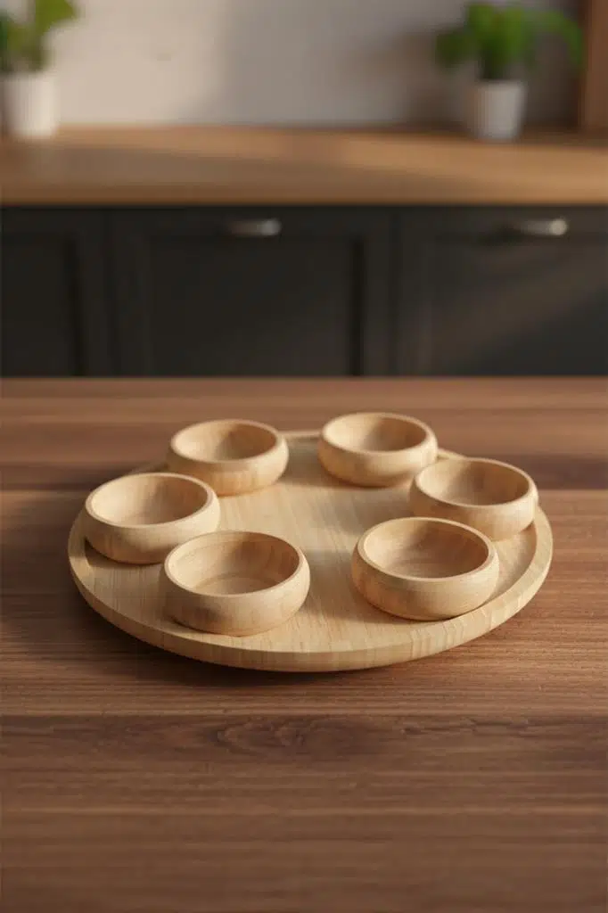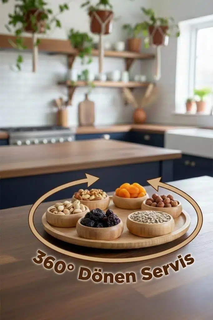 Atbyhome 360 Derece Döner Bambu Kahvaltı & Çerezlik Sunum Seti | 7 Parça Doğal Konfor