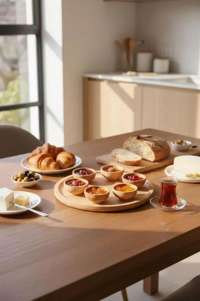 Kahvaltıda reçel, bal, peynir sunumları