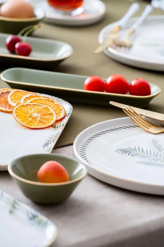 acar vegas kahvaltı takımı, 6 kişilik kahvaltı takımı, gold yaldızlı kahvaltı seti, yeşil beyaz desenli kahvaltı takımı, stoneware kahvaltı seti, şık kahvaltı sunumu, çeyizlik kahvaltı takımı, misafir sofraları için kahvaltı takımı, modern sunum tabağı, gold detaylı servis seti