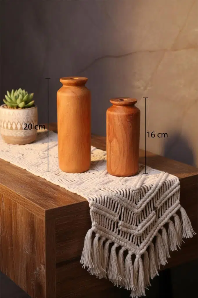 Asper 2'li Doğal Ahşap Vazo Seti | İnce Boyunlu Dekoratif Obje (20 cm & 16 cm)