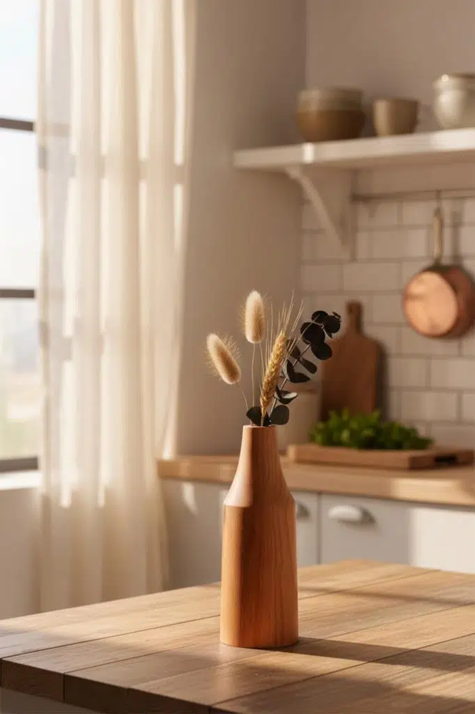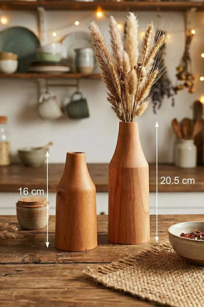Doğal Dokunuş: Ahşabın kendine has damarlı yapısı, her bir vazoyu eşsiz kılar ve plastik/yapay ürünlerin aksine ortamı ısıtır.