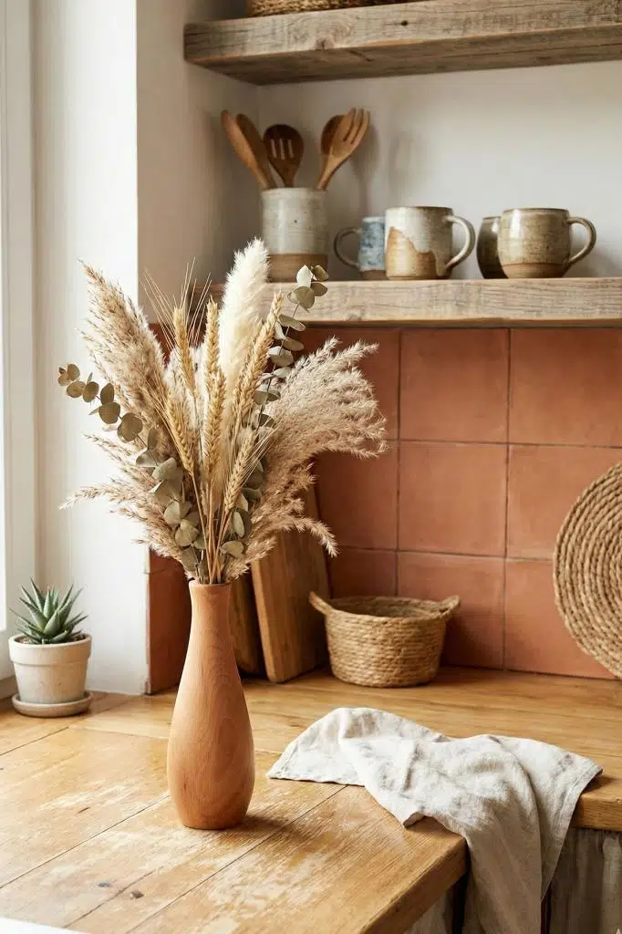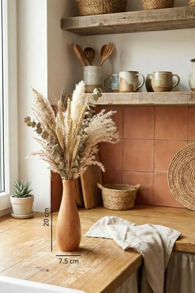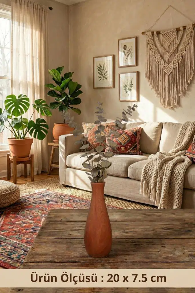 Kullanım Alanı: Konsol, yemek masası, kitaplık veya orta sehpa üzerinde; kurutulmuş pampas, başak, okaliptüs veya yapay çiçeklerle kullanım için idealdir.