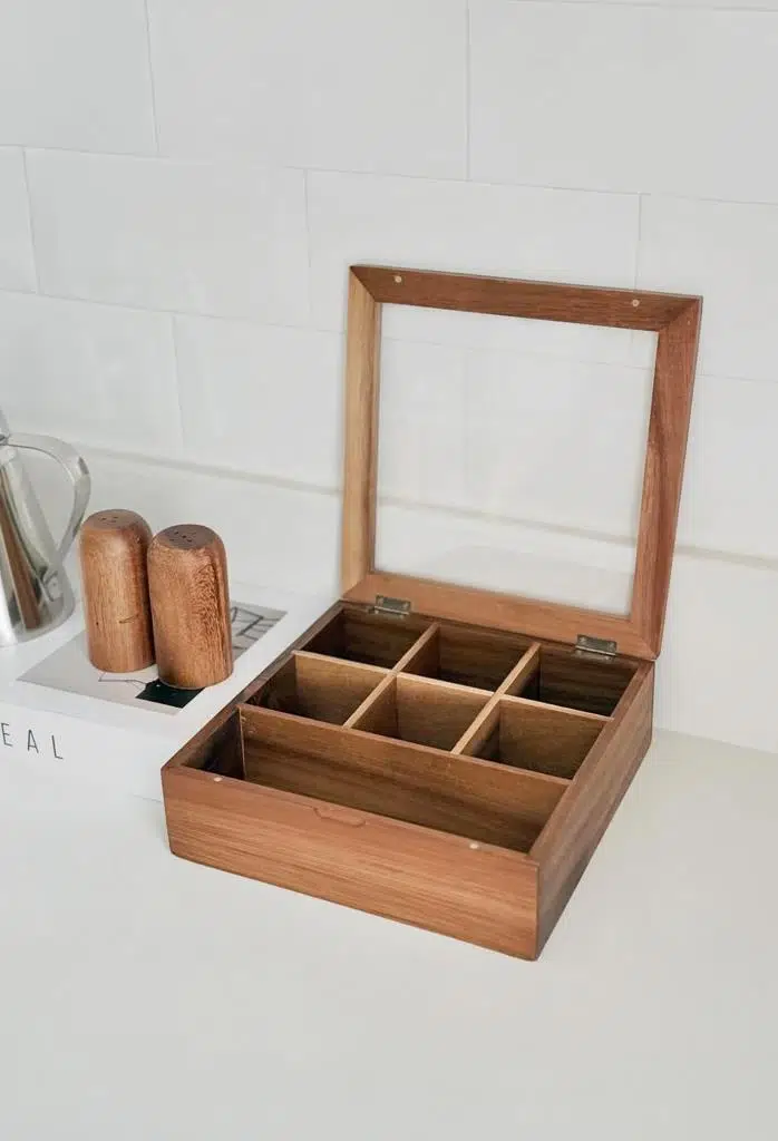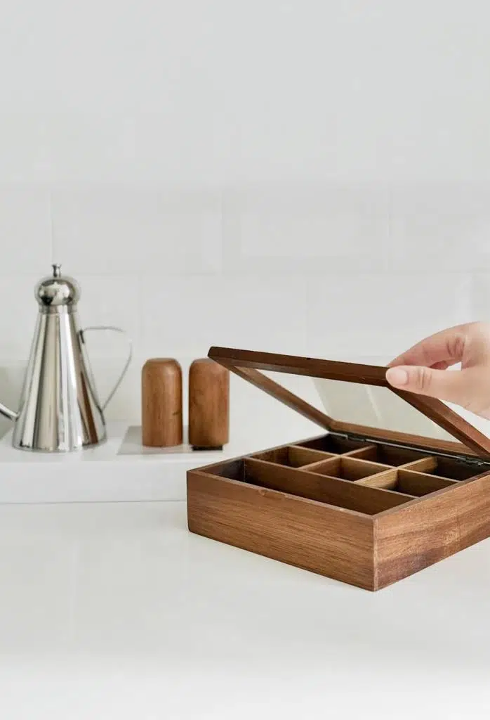 Daha düzenli bir mutfak ve keyifli çay saatleri için Akasya Ahşap Kapaklı 5 Bölmeli Çay Kutusu şimdi sizlerle!