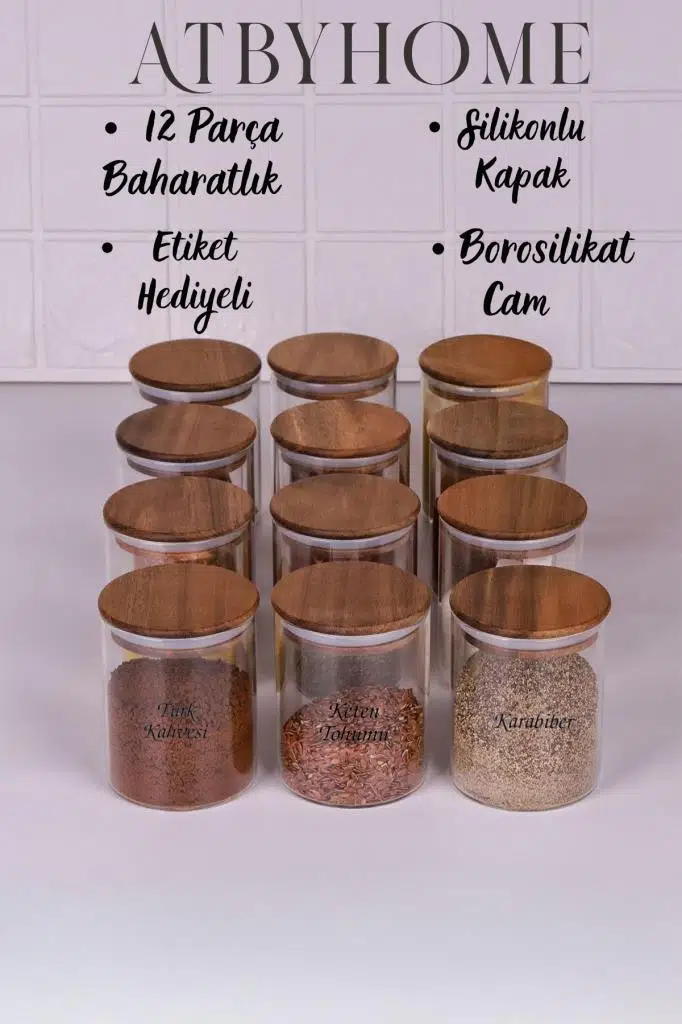 | Etiketler | Akasya Kapaklı Borosilikat Cam Baharatlık Saklama Kavanozu 200 ml 12'li + Etiket Hediyeli |