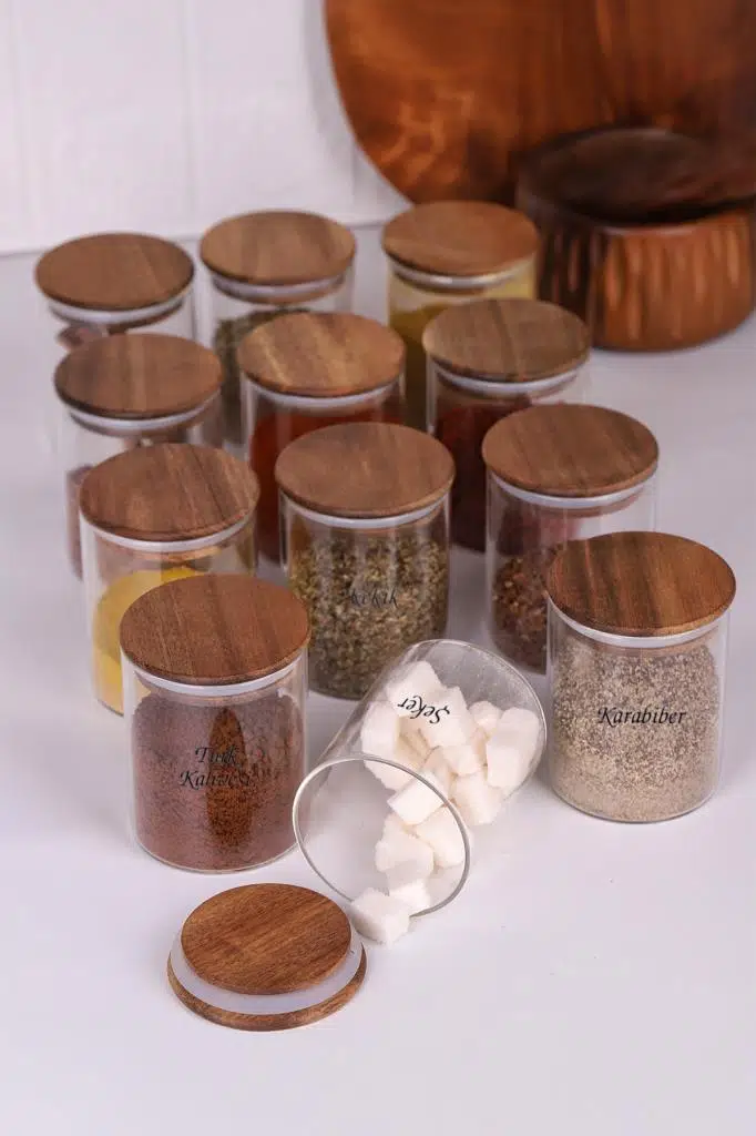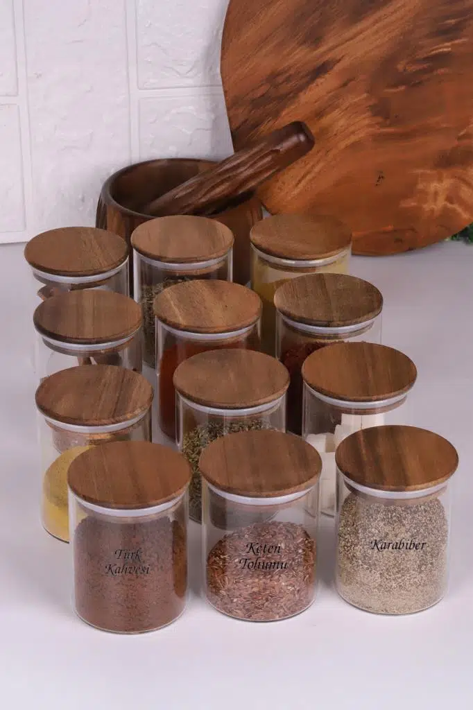 Mutfakta düzeni sağlamak ve baharatlarınızı uzun süre taze tutmak için Akasya Kapaklı Borosilikat Cam Baharatlık Saklama Kavanozu 12'li seti harika bir seçim! Isıya ve darbelere dayanıklı borosilikat cam ile doğal akasya kapağın birleşimi, hem estetik hem de fonksiyonel bir kullanım sunar.