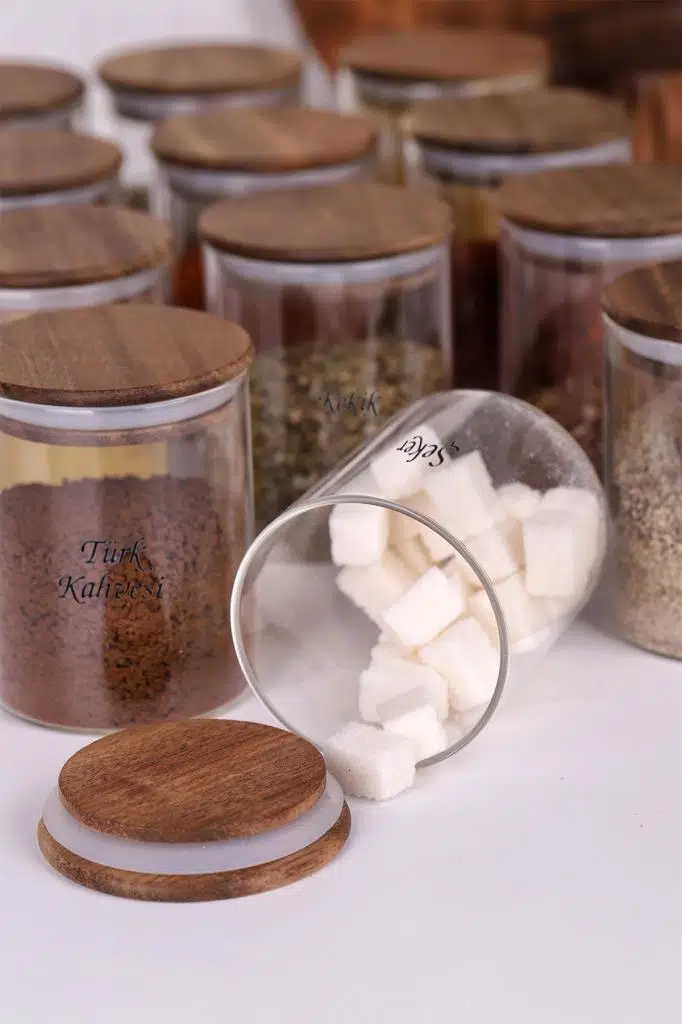 Bu özel kavanoz seti, baharatlarınızı düzenli bir şekilde saklamanıza yardımcı olurken, mutfağınıza şıklık katar. Hava geçirmez akasya kapakları sayesinde içerikleri taze tutar ve hijyenik bir saklama alanı sunar.