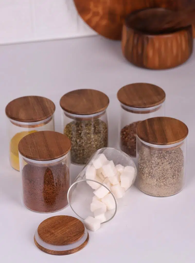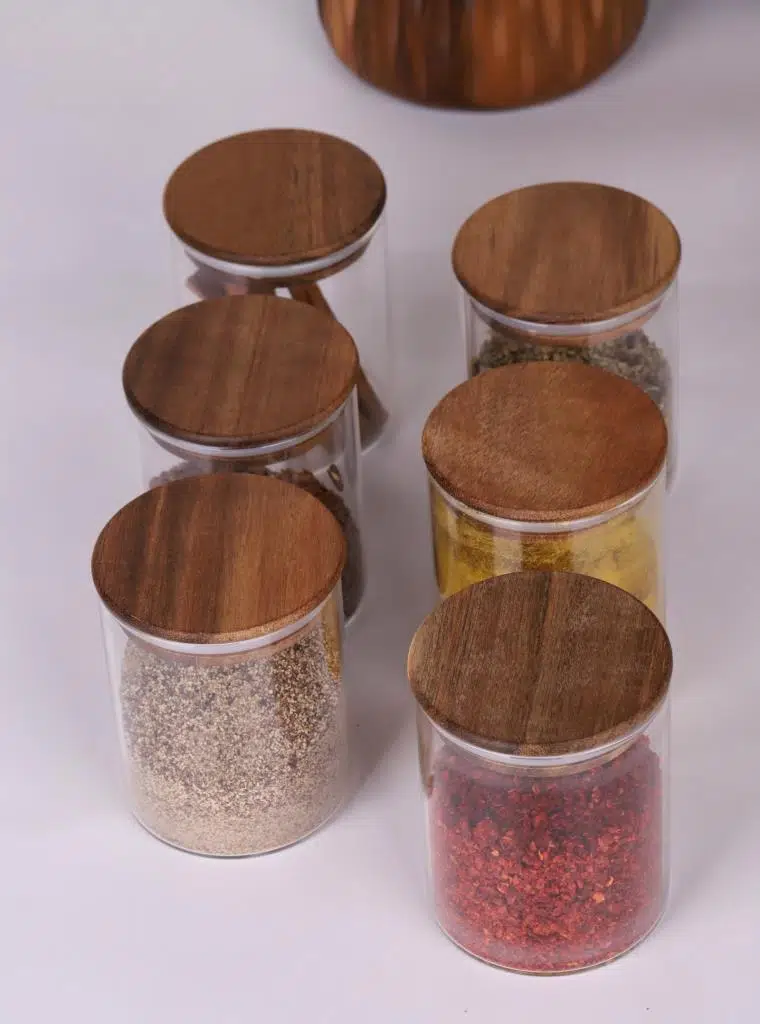 Akasya Kapaklı Borosilikat Cam Baharatlık Saklama Kavanozu 200 ml 6'lı – Şık ve Pratik Saklama Çözümü!