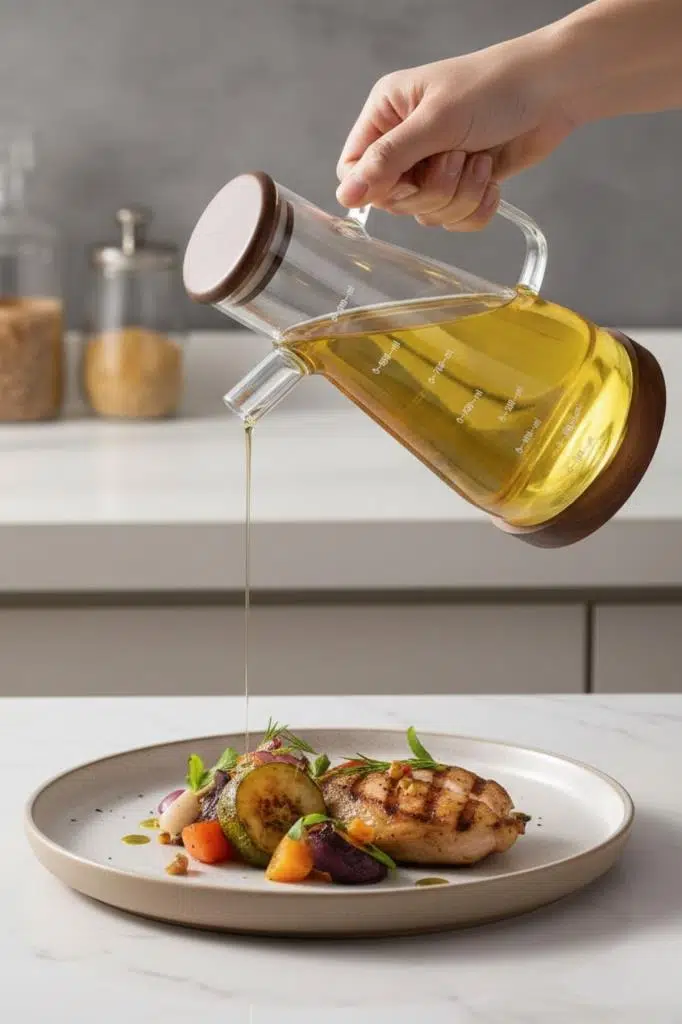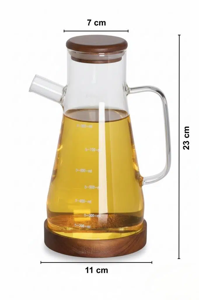 Mutfağınızda şıklığı ve düzeni bir araya getiren bu borosilikat cam yağdanlık, akasyadan üretilmiş kapak ve akasyadan stant/altlık detayıyla benzerlerinden ayrılır. 900 ml hacmi sayesinde zeytinyağı, ayçiçek yağı veya sirkeyi tek üründe pratik şekilde saklayıp servis edebilirsiniz.