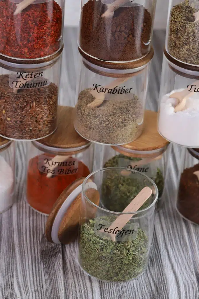 Bu set sayesinde baharatlarınız hem düzenli hem de taptaze kalır. 65'li etiket hediyesiyle hangi baharat nerede, artık hep belli!