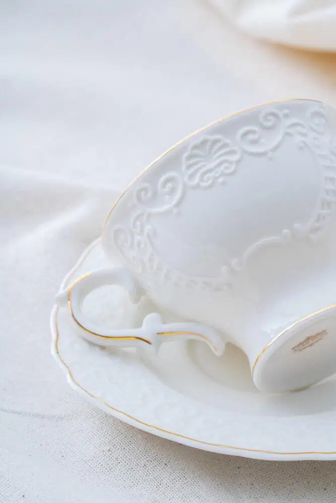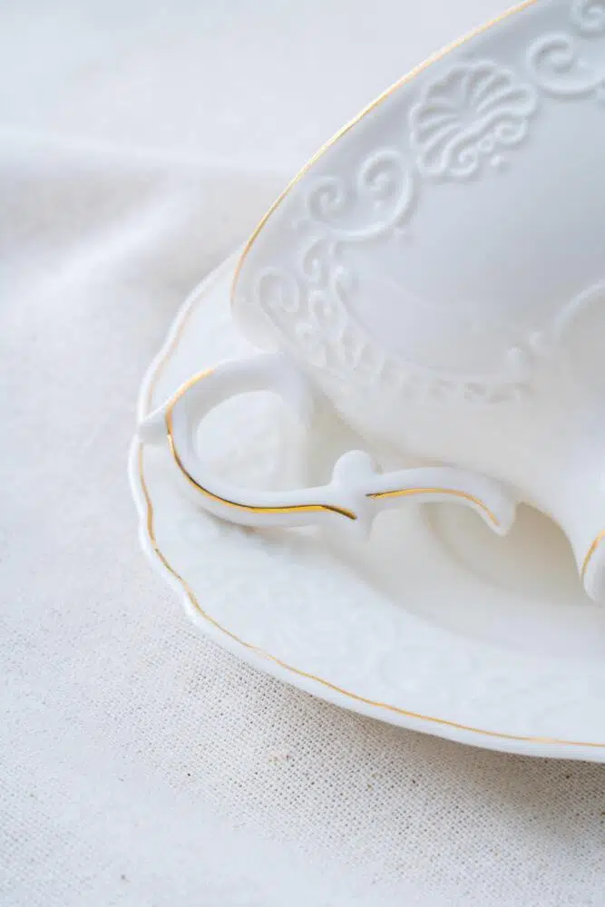 Tasarım: Porselen üzerine zarif gold (altın) yaldız detaylar, lüks ve şık bir görünüm.