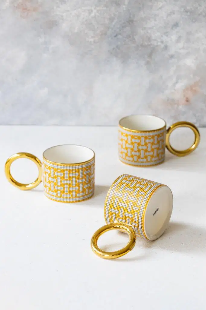 Modern ve sofistike tasarımıyla dikkat çeken Atby 270CC Halka Kulplu Ring Porselen Kupa, kahve ve çay keyfinizi bir üst seviyeye taşıyor! Şık halka şeklindeki altın detaylı kulbu ve zarif desenleriyle, hem günlük kullanım hem de özel sunumlar için mükemmel bir tercih.