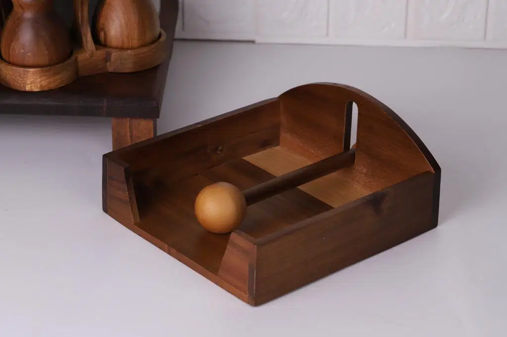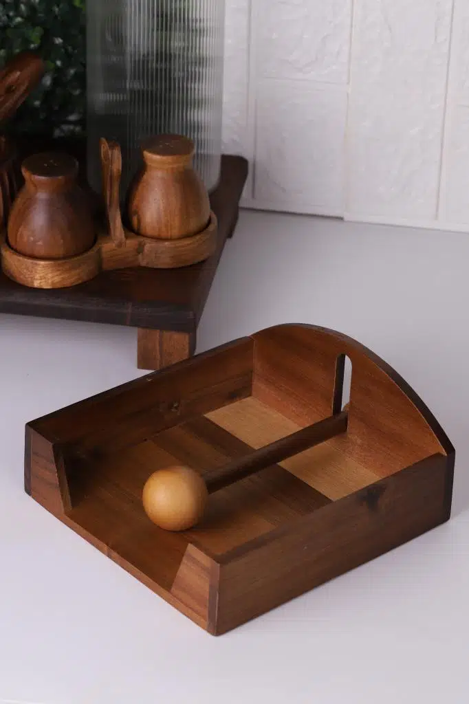 Sofralarınıza doğallık ve zarafet katın! Atby Akasya Peçetelik, %100 doğal Akasya ağacından üretilmiş olup, hem mutfağınızda hem de sofralarınızda estetik ve fonksiyonel bir kullanım sunar. Doğal ahşap dokusu sayesinde her parça eşsizdir ve dekoratif bir görünüm sağlar.