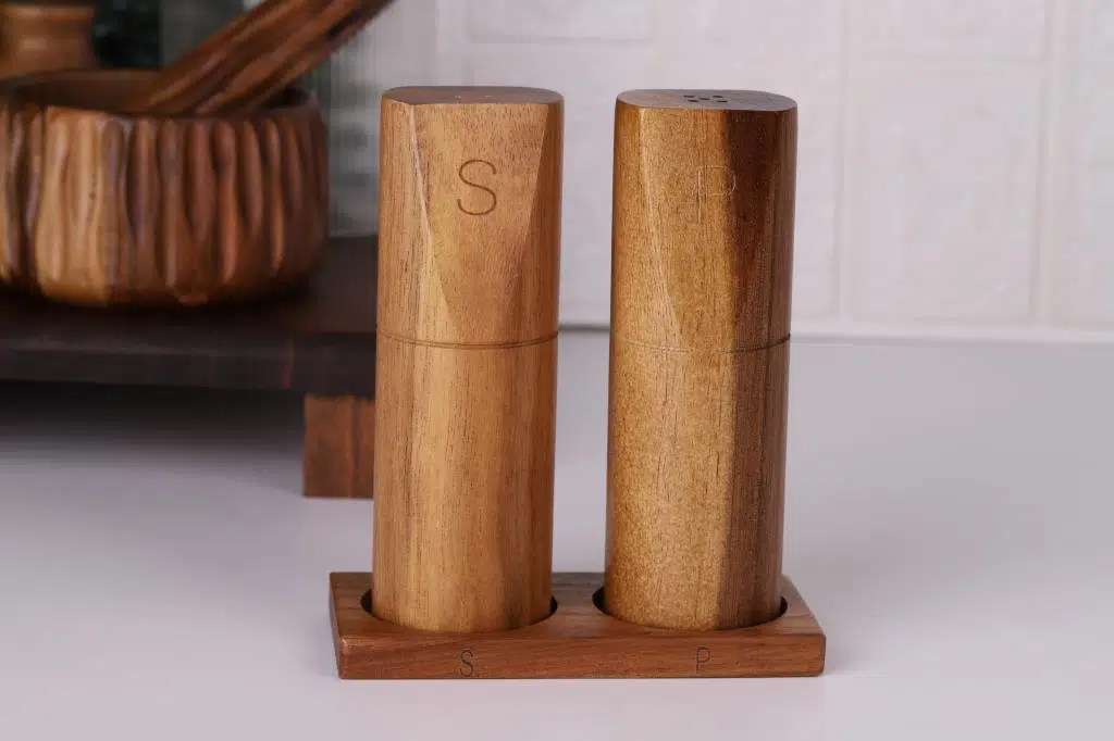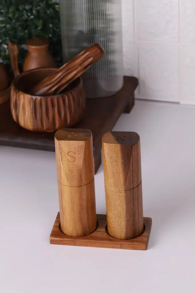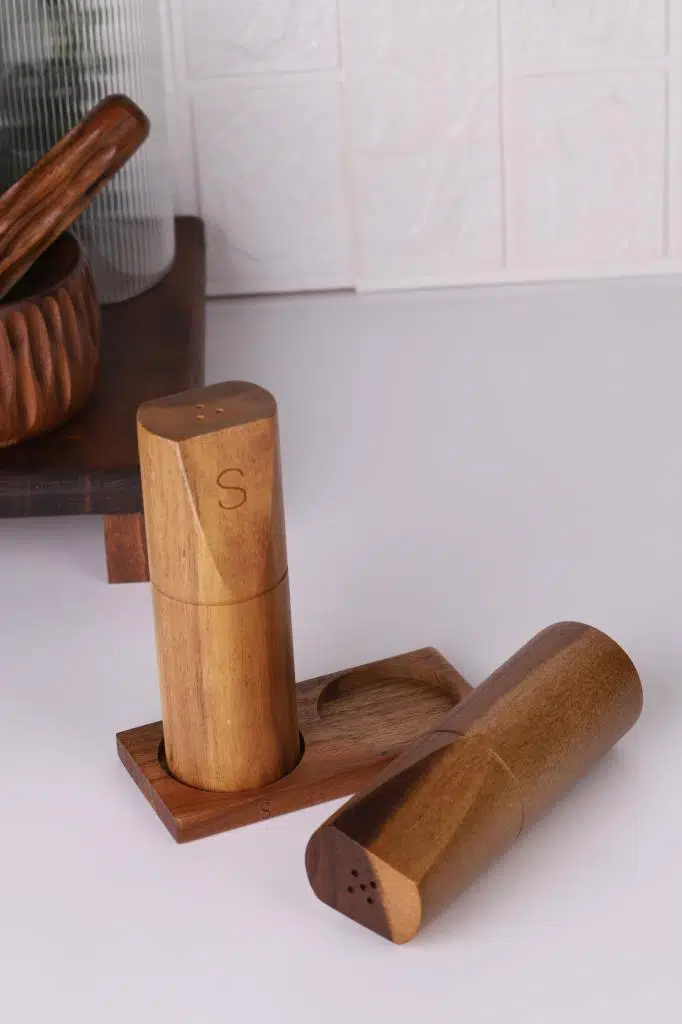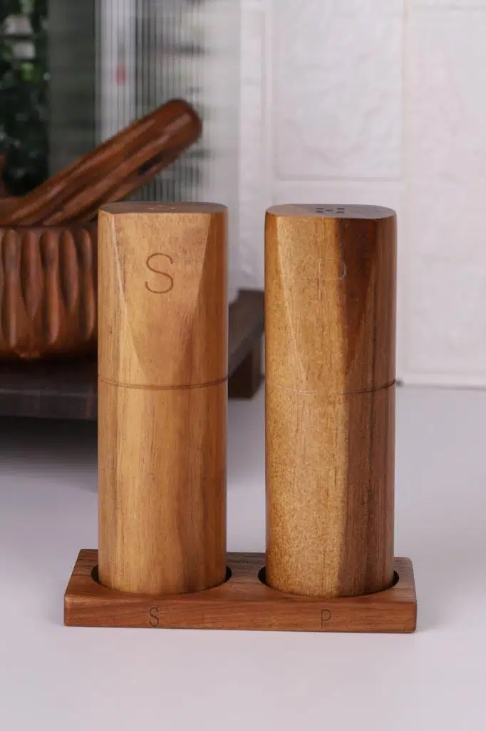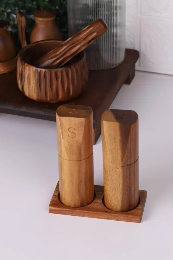 Mutfakta doğallık ve zarafeti bir araya getirin! Akasya Tuzluk & Biberlik, %100 doğal Akasya ağacından üretilmiş, estetik ve dayanıklı yapısıyla sofralarınıza sıcak bir dokunuş katıyor. El yapımı doğal dokusu sayesinde her ürün benzersiz bir görünüme sahiptir.