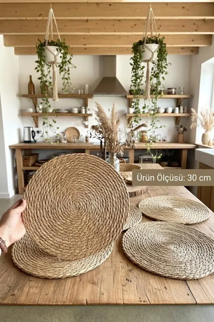 Atbyhome 6’lı Doğal Hasır Amerikan Servis & Supla Masa Seti – 30 cm | Bohem ve Rustik Dokunuş
