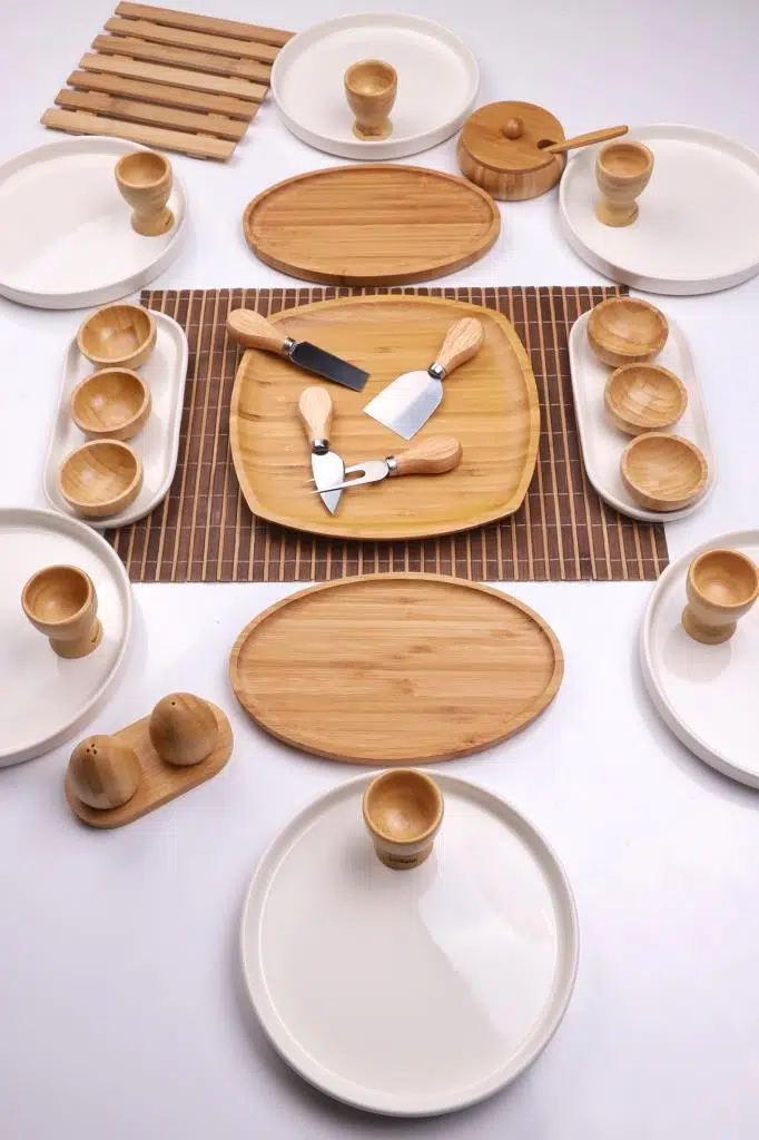 Doğal bambu ve seramik materyallerin uyumu ile şık ve sıcak bir sunum