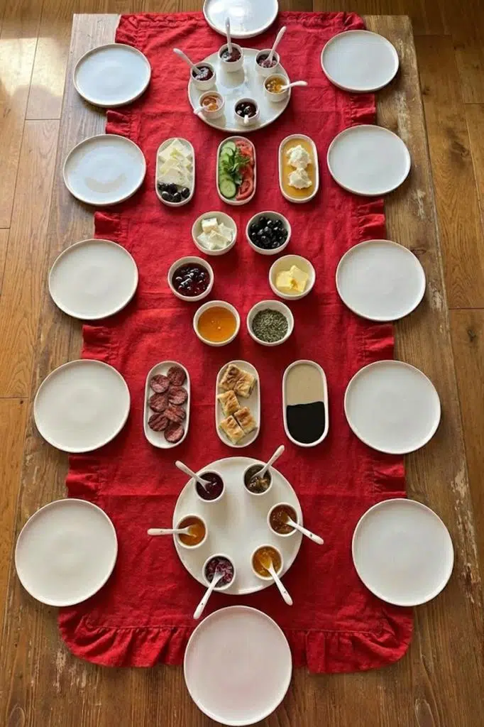 Diğer setlerden farklı olarak 2 adet büyük sunum tabağı içeren bu takım, masanın her iki ucuna da hakimiyet kurmanıza ve ikramlarınızı rahatça sergilemenize olanak tanır.