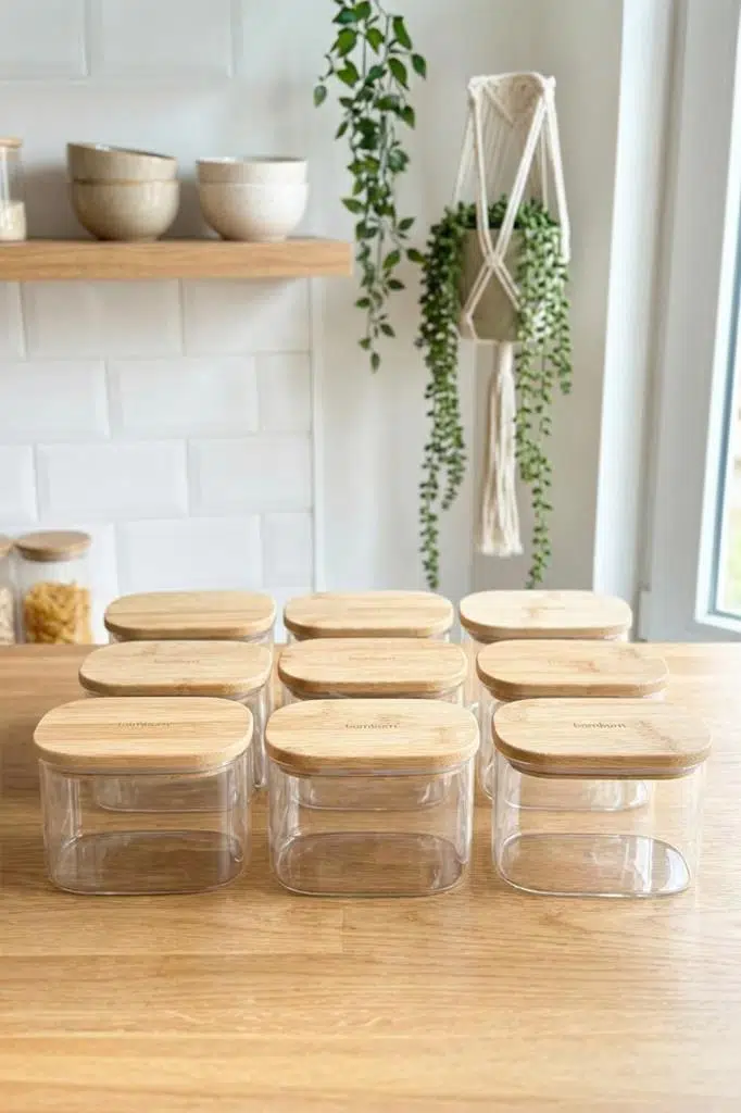 Atbyhome Multy 9'lu Bambu Kapaklı Cam Saklama Kabı Seti 600 ml | Dikdörtgen Kiler Düzenleyici