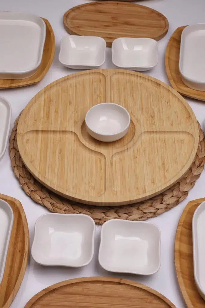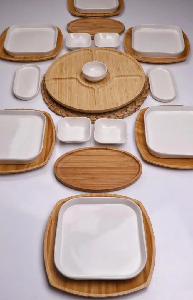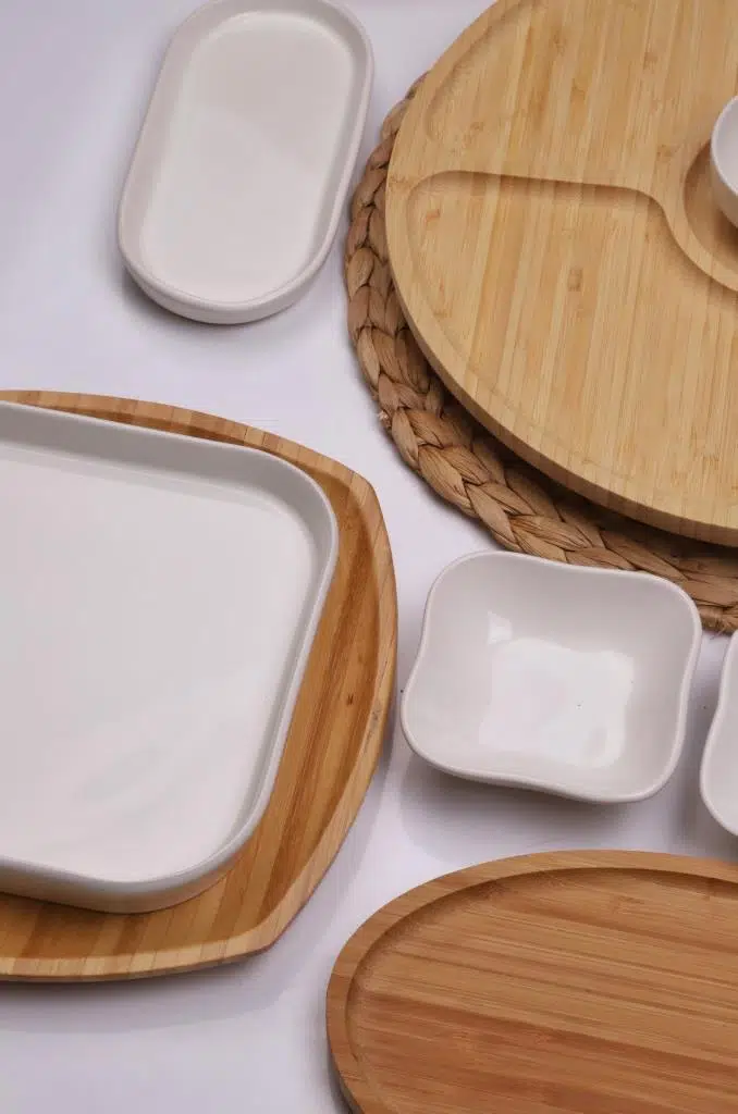 Şıklık ve Fonksiyonellik! Doğal bambu ve zarif seramik tasarımıyla, bu set sofralarınıza hem estetik hem de fonksiyonel bir dokunuş katar. Misafirlerinizi şık bir şekilde ağırlamak için ideal bir seçim!