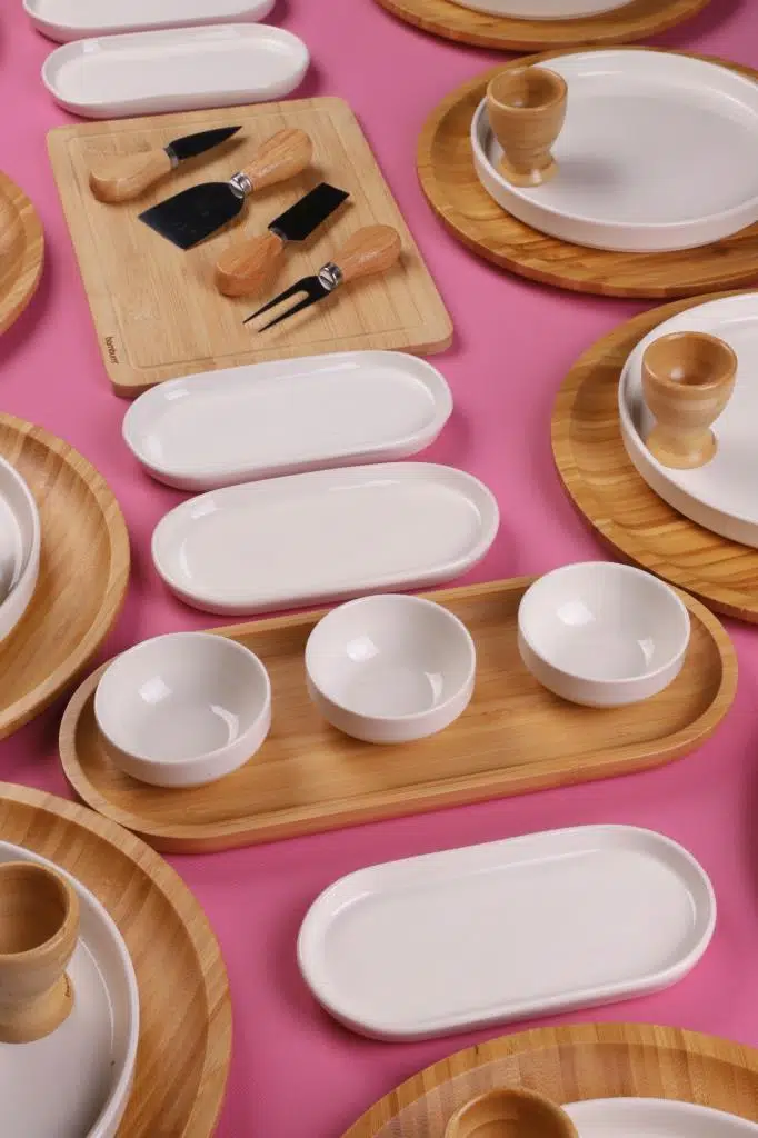 Sağlıklı, çevre dostu ve uzun ömürlü olan bambu ürünlerle çevrenize duyarlı tercihler yaparken, ısıya dayanıklı ve şık seramik tabaklarla sofranıza zarafet katarsınız.