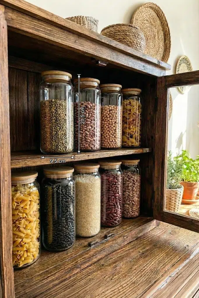 Görsel Erişim: Şeffaf cam yapısı sayesinde kavanozların içinde ne kadar ürün kaldığını kapağı açmadan kolayca görebilir, alışveriş listenizi buna göre planlayabilirsiniz.