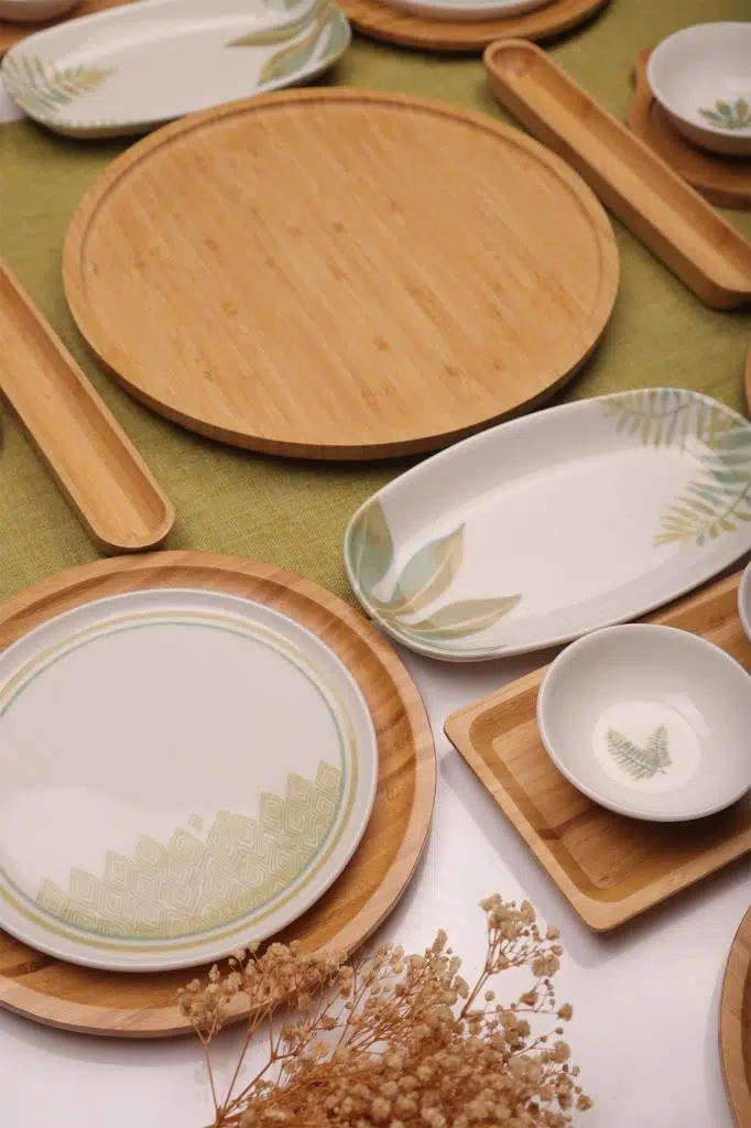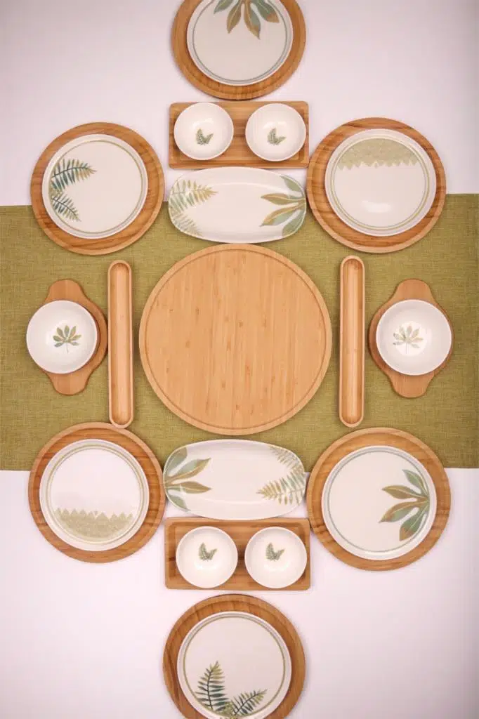 Tasarım: "Sage" serisi, minimalist yeşil yaprak motifleriyle botanik ve ferah bir tarz sunar. Bambu parçalarla birleşerek "Eco-Chic" (Doğal Şıklık) bir görünüm yaratır.
