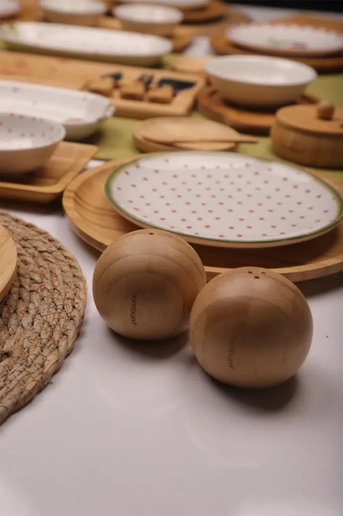 2 Adet Bambu Topi Tuzluk Biberlik (7x6.2 cm) – Sofraya sempatik bir dokunuş katan küre formlu set.
