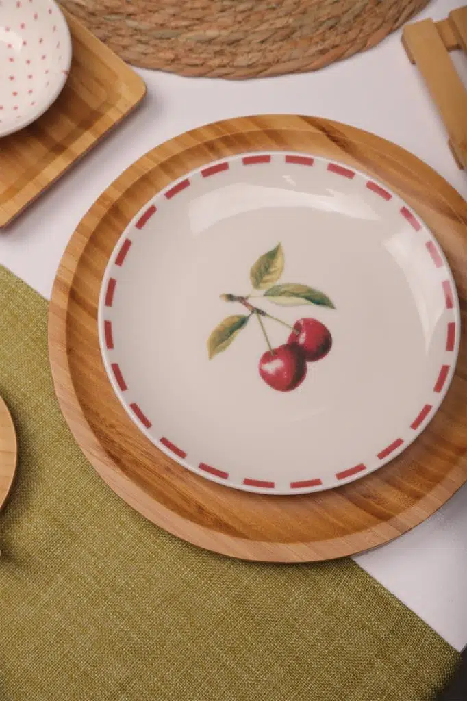 6 Adet Porselen Servis Tabağı (19 cm) – Kiraz desenli zarif servis tabakları.