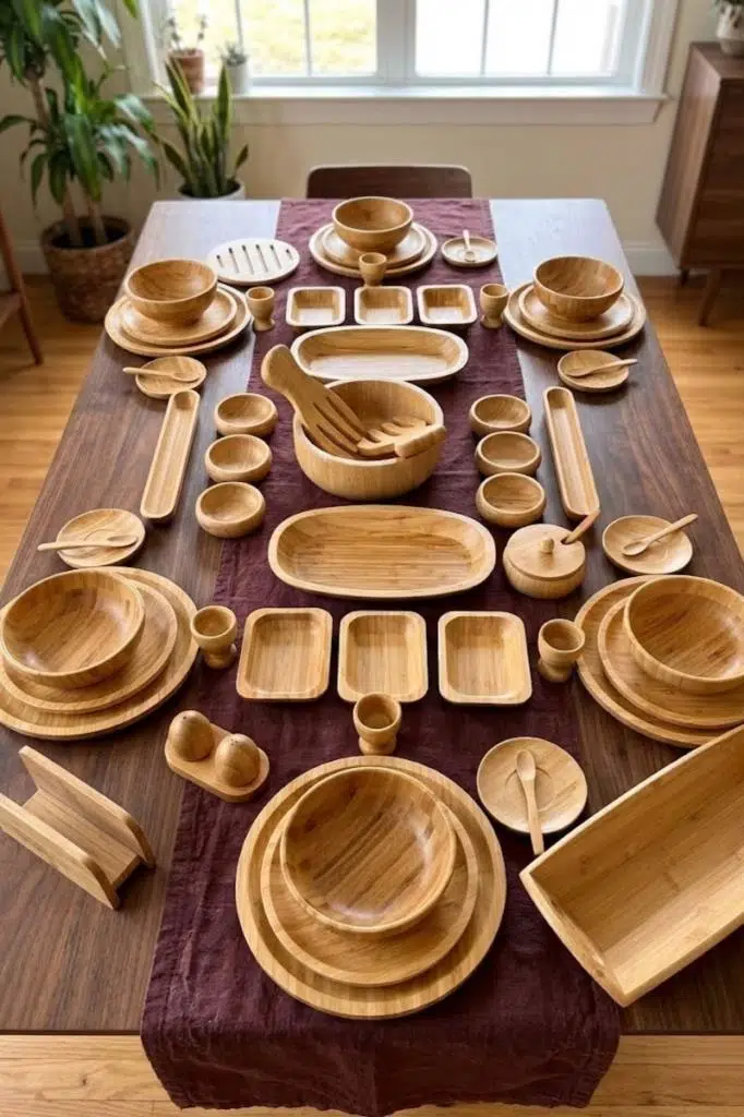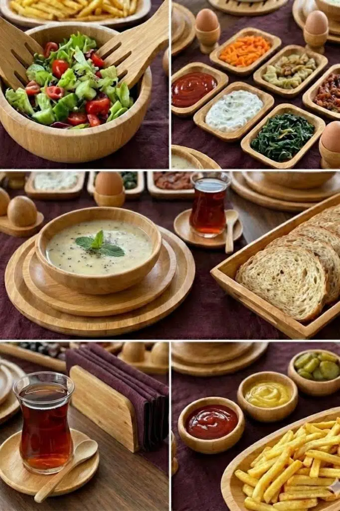 Çift Fonksiyonlu (Hybrid Tasarım): Piyasada genellikle sadece kahvaltı seti olarak bulunan bambu takımların aksine, bu set çorba kaseleri ve büyük servis tabaklarıyla tam teşekküllü bir akşam yemeği takımı özelliğine de sahiptir.
