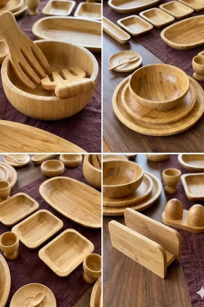 Atbyhome Talia 6 Kişilik 64 Parça Doğal Bambu Yemek ve Kahvaltı Takımı | Türkiye'de Bir İlk