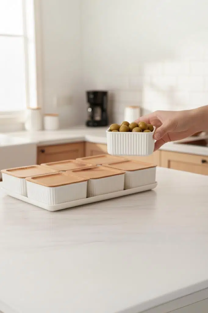 Kapasite: 300 ml (Her bir kase için). Reçel, zeytin, peynir çeşitleri, soslar veya çerezler için ideal hacim.