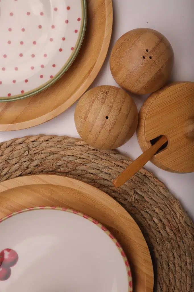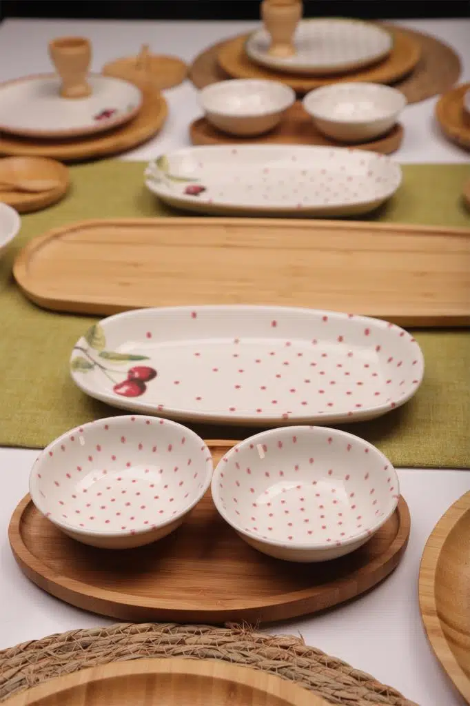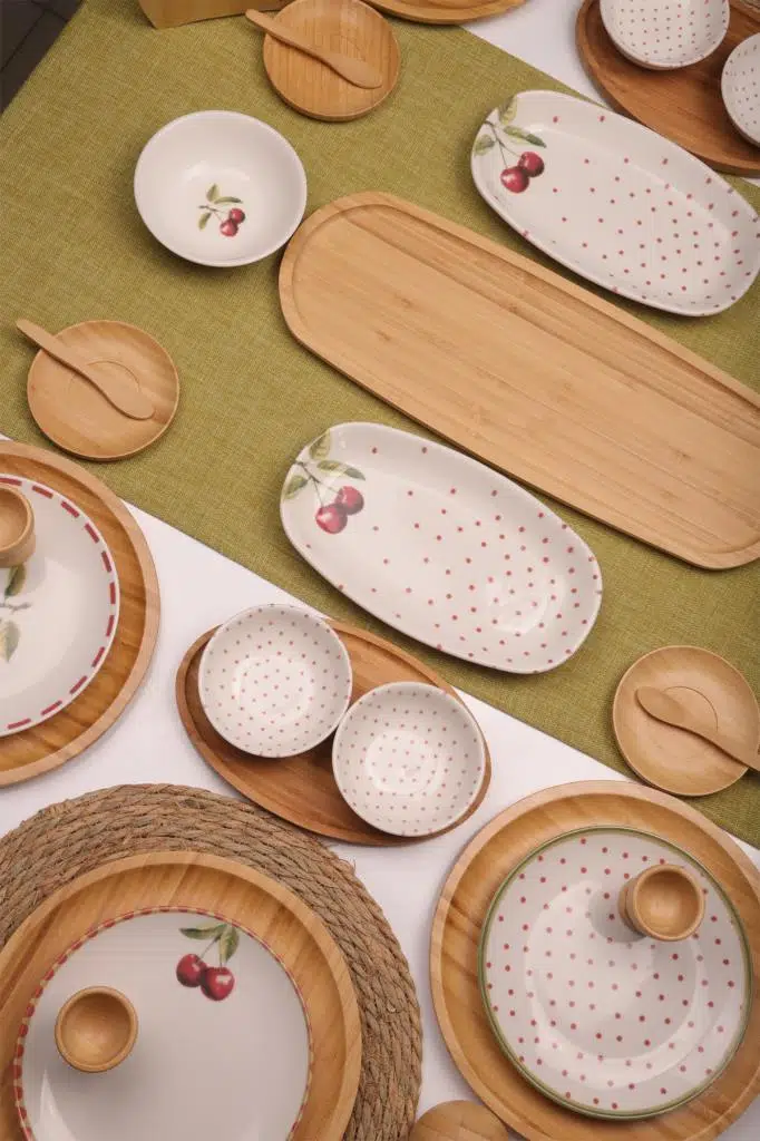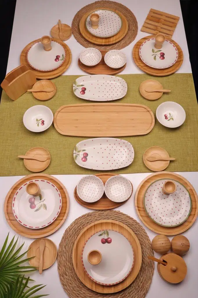 kahvaltı takımı, 48 parça kahvaltı seti, bambu kahvaltı takımı, yumurtalıklı kahvaltı seti, çeyiz seti, bambu sunum tabağı, bambu tuzluk biberlik, Atbyhome Viva, 6 kişilik yemek takımı, doğal kahvaltı sunumu