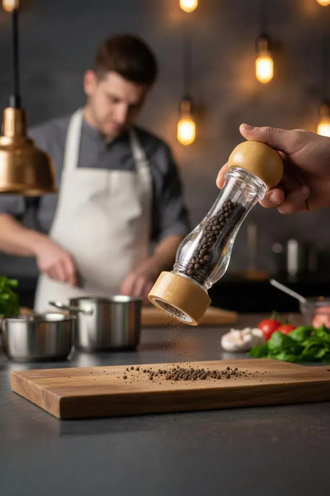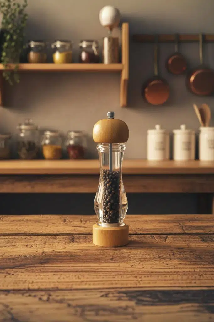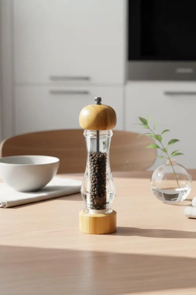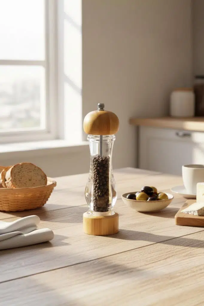 Şeffaf Şıklık: Akrilik gövdesi sayesinde içindeki baharatı (tuz mu, biber mi?) ve kalan miktarı bir bakışta görebilirsiniz.