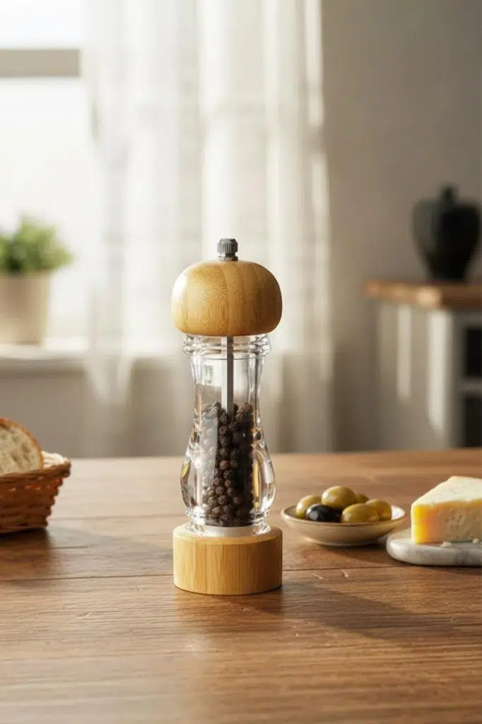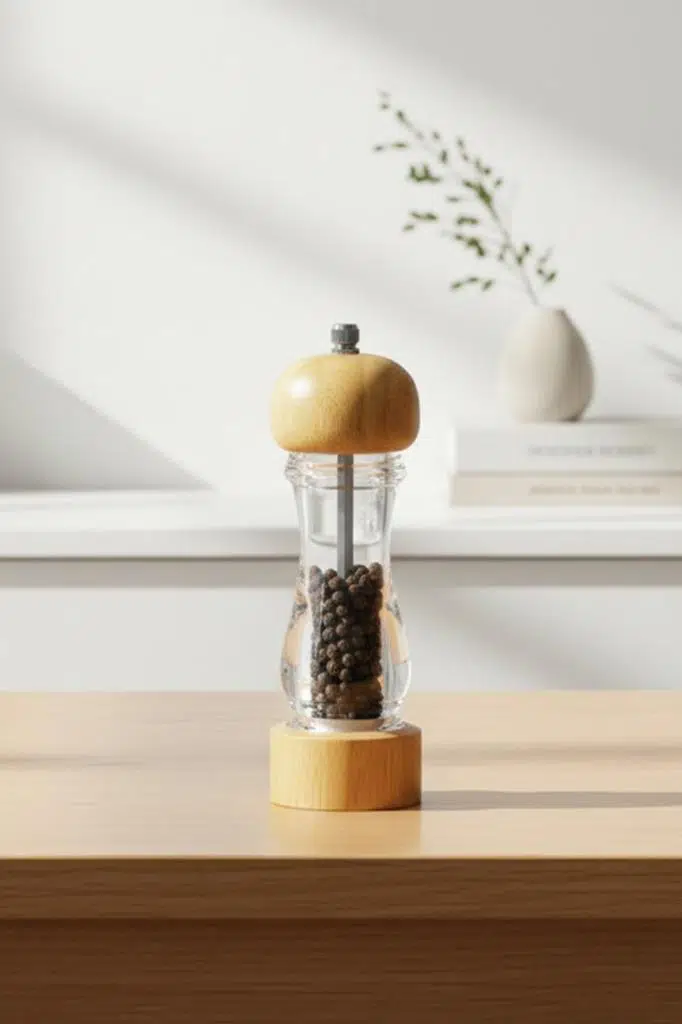 1 adet Orta Boy Bambu ve Akrilik Tuz/Karabiber Değirmeni