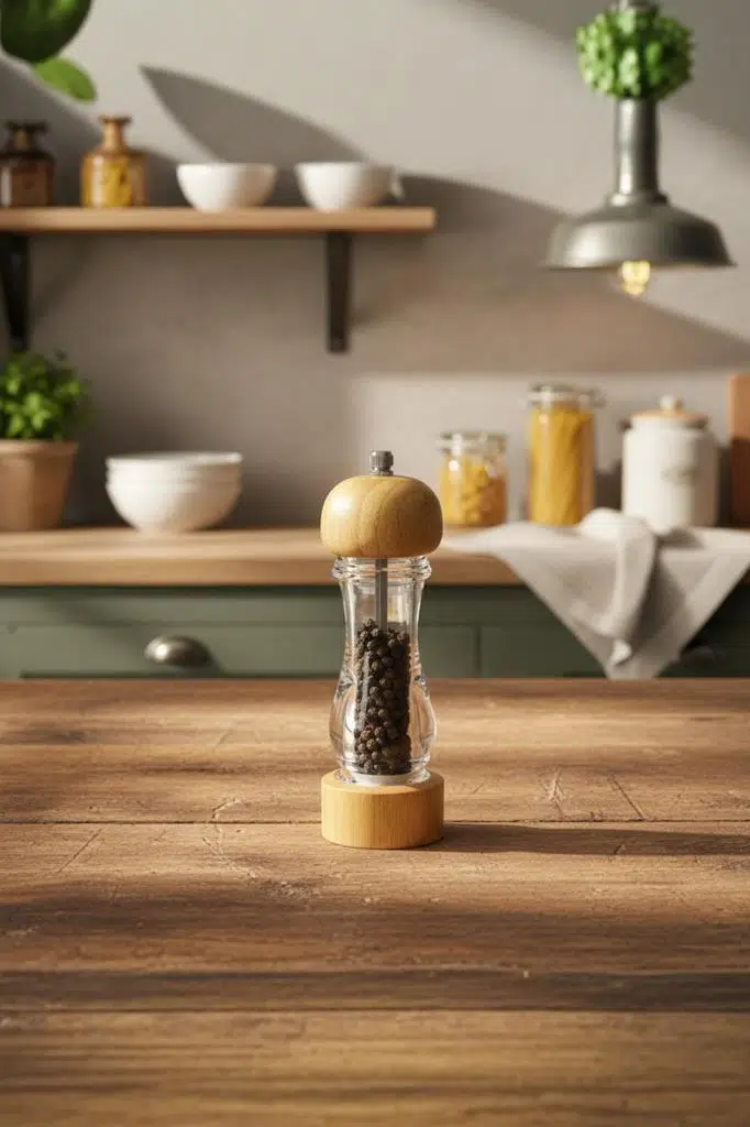 Şeffaf Şıklık: Akrilik gövdesi sayesinde içindeki baharatı (tuz mu, biber mi?) ve kalan miktarı bir bakışta görebilirsiniz.