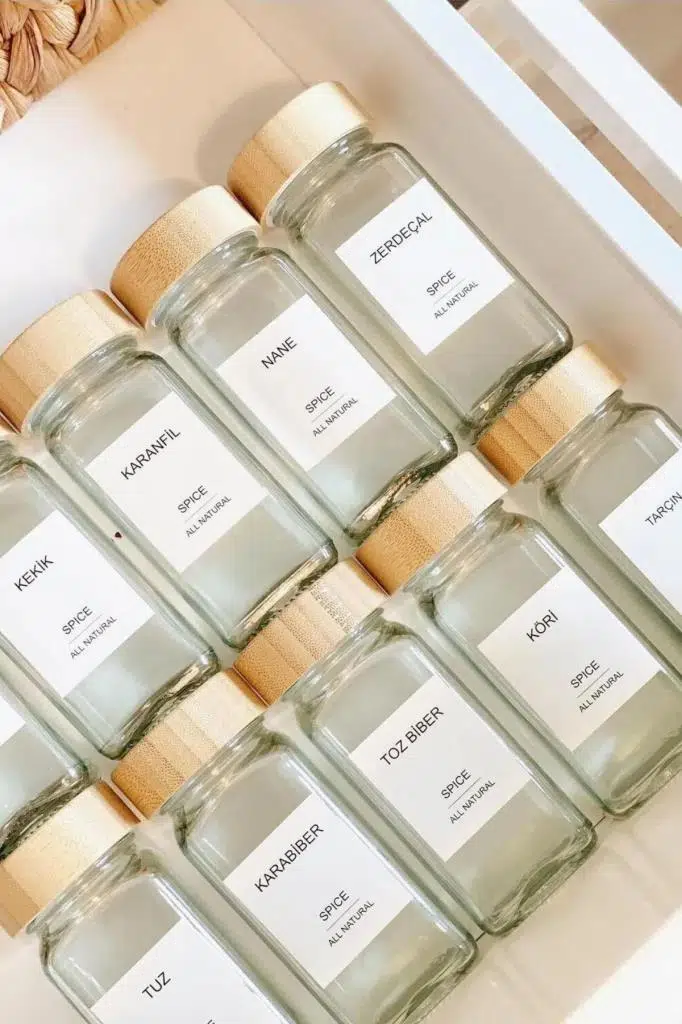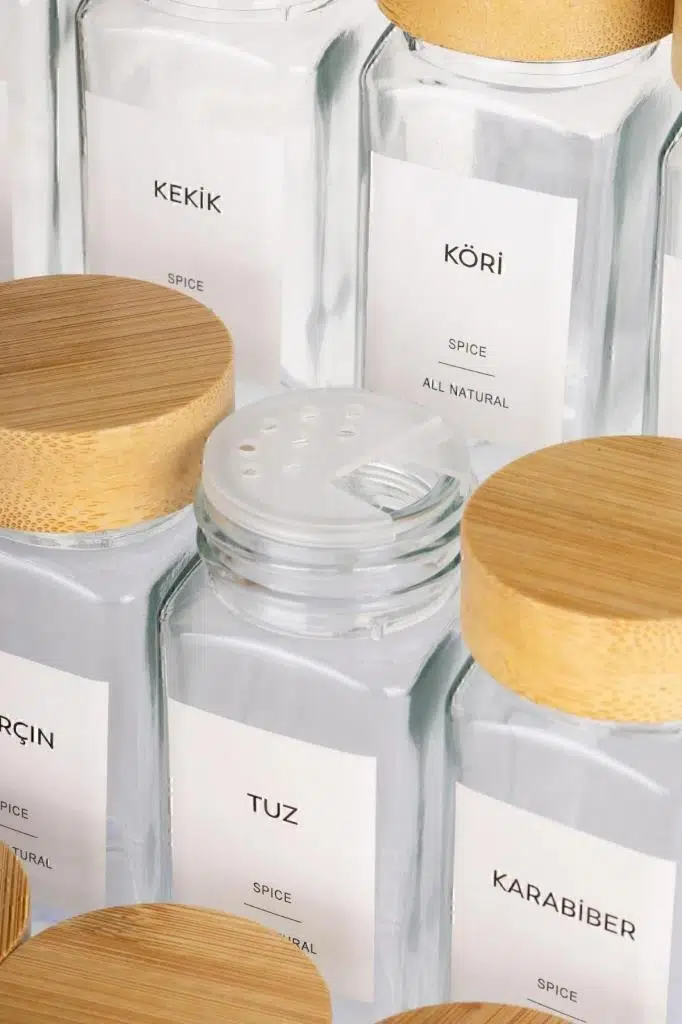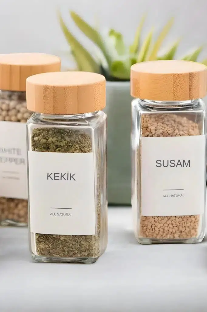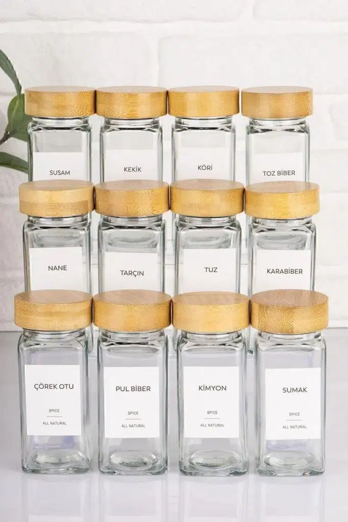 | Etiketler | Bambu Kapaklı Cam Baharatlık Seti 12 Adet - 16 Adet etiket hediyeli |