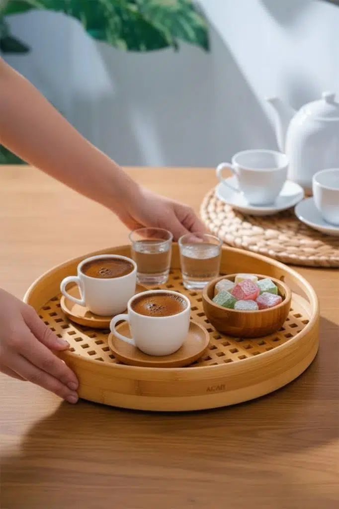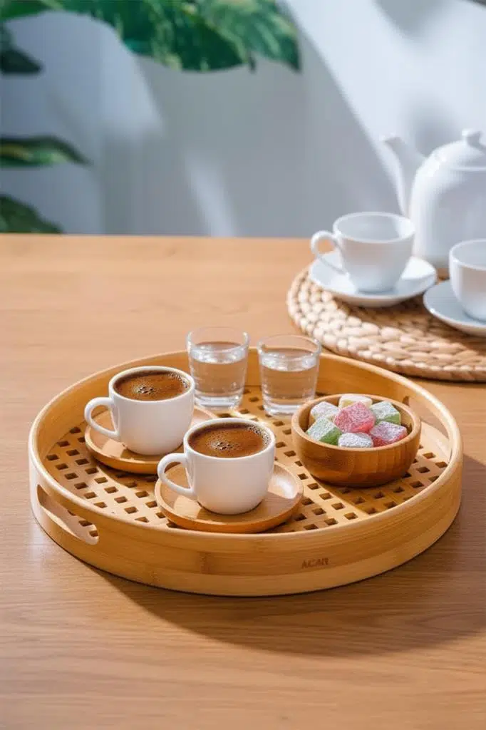 Şık ve Doğal Tasarım: Doğal bambu dokusu ile sofranıza zarif bir hava katar