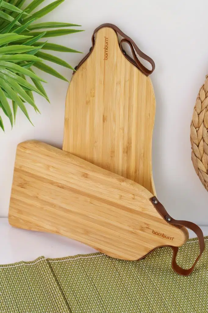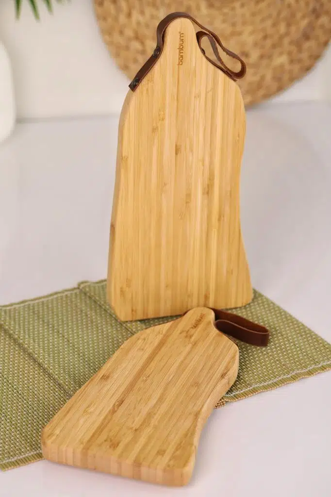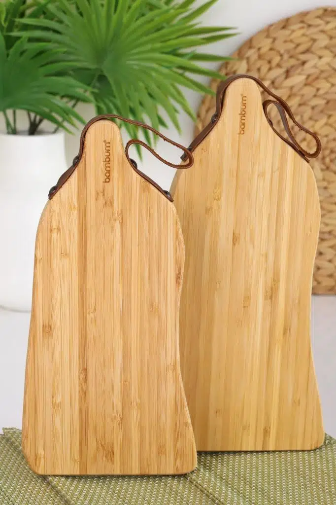 Mutfakta hem şık hem de pratik kullanım sağlayan 2’li Bambu Ahşap Kesme ve Sunum Tahtası Seti, doğal yapısı ve askılı tasarımı ile kolay saklama ve düzen sunar. Sebze, meyve, peynir veya ekmek doğrama işlemlerinde olduğu gibi sunumlarda da estetik bir görünüm sağlar.