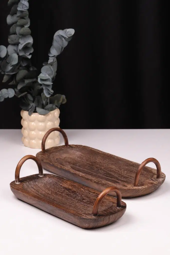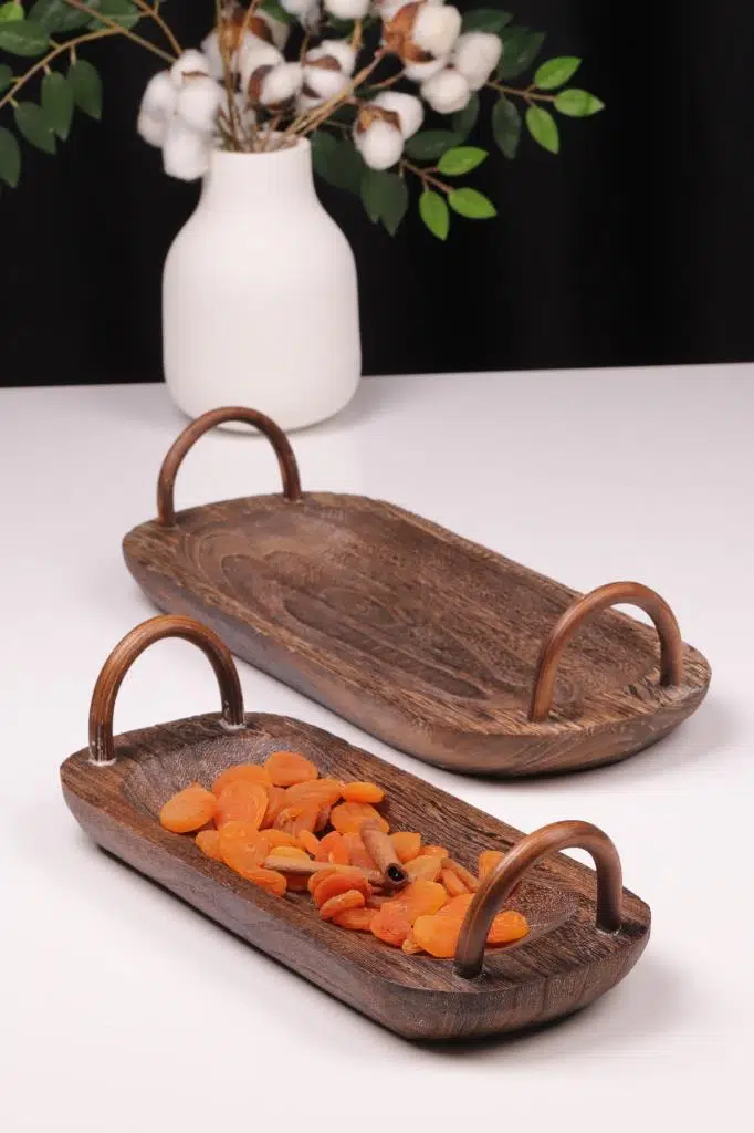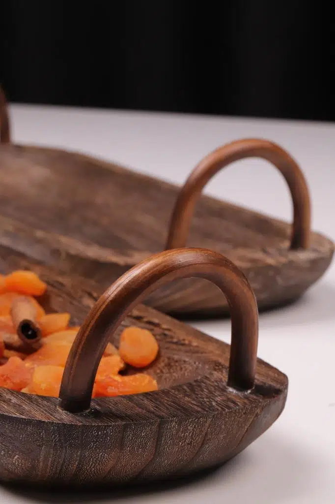 ahşap sunum seti, pavlonya darkwood tabak, kulplu servis tabağı, dikdörtgen ahşap tabak, bambum sunum seti, rustik sunum tabağı, doğal ahşap servis, kahvaltı sunum seti