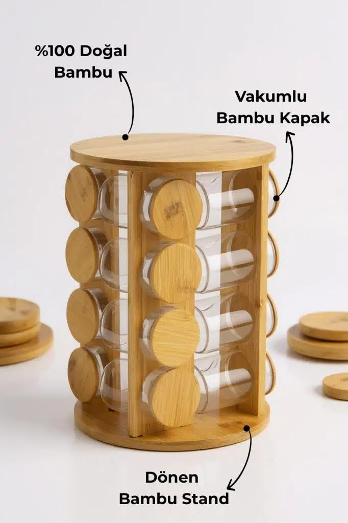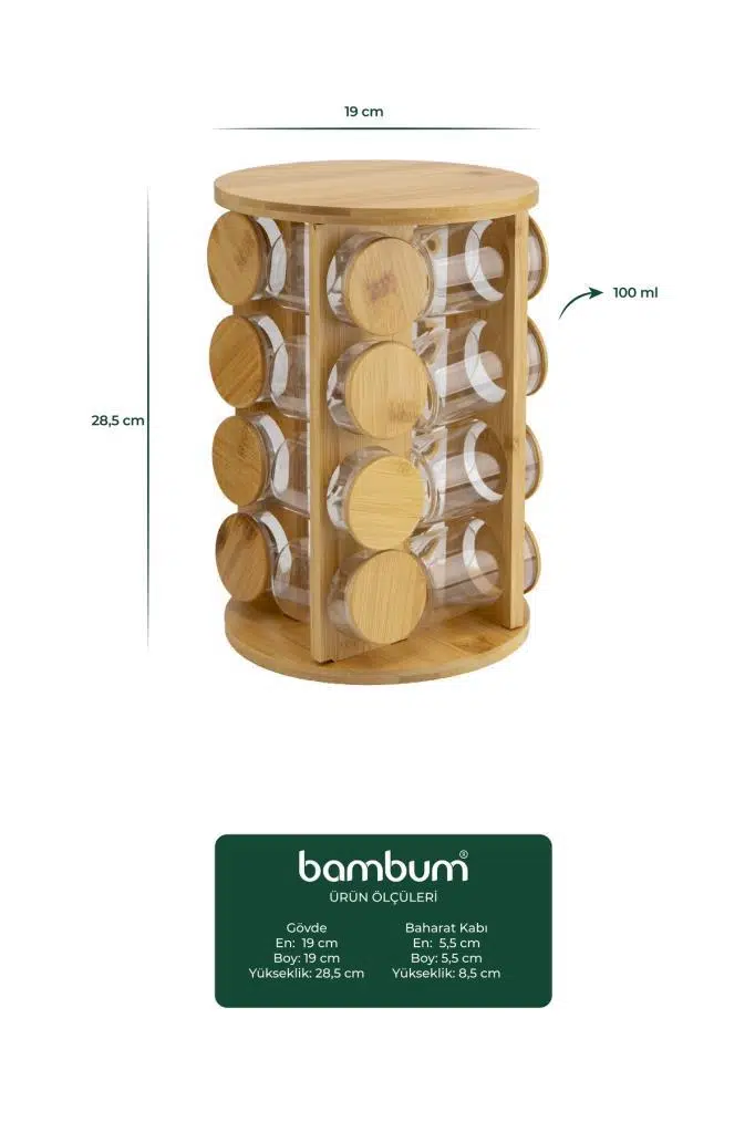 Bambum Atina 16'lı Dönen Baharatlık Seti | 360° Pratiklik ve Doğallık