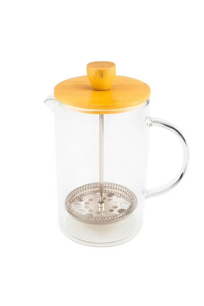 bambum azir, french press 600 ml, bambu kapaklı french press, cam kahve demliği, bambum kahve presi, doğal bambu kahve demleme, sürdürülebilir mutfak ürünleri, borosilikat cam french press