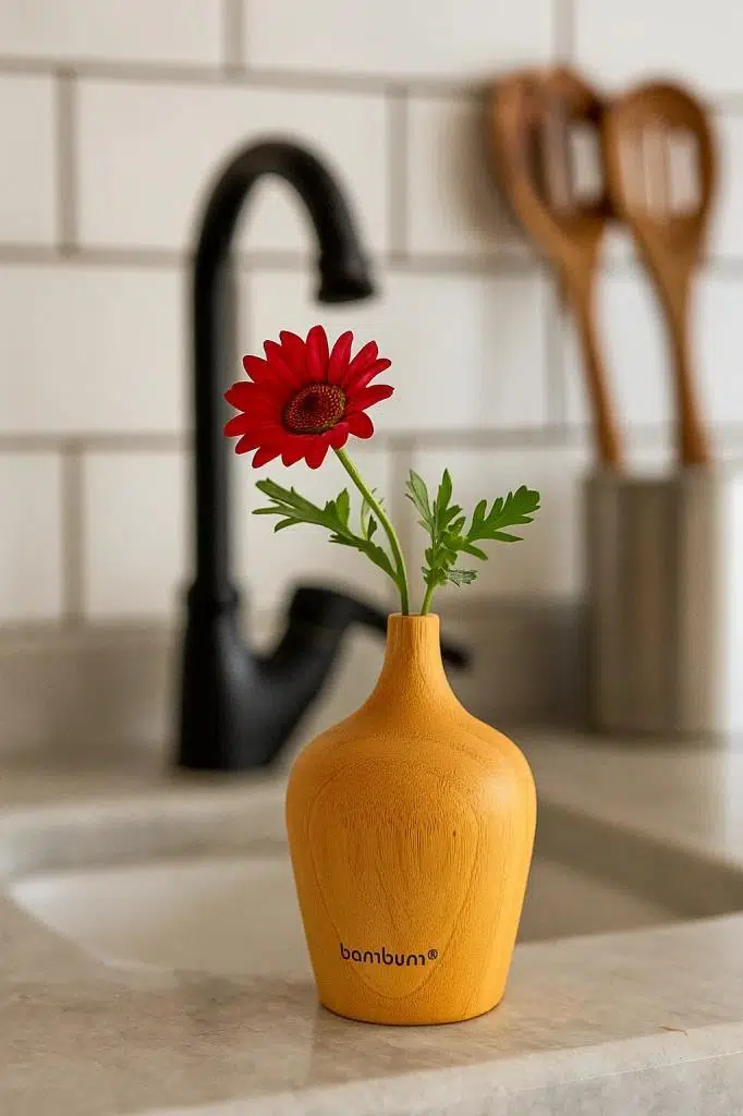 bambu vazo, dekoratif bambu ürün, küçük bambu vazo, doğal bambu dekorasyon, bambum vazo, minimal dekoratif obje, ofis dekorasyonu, sürdürülebilir bambu ürün