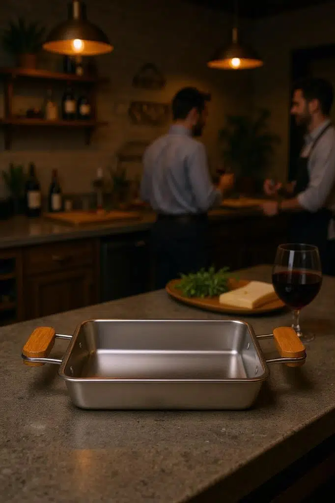 Mutfakta şıklığı ve dayanıklılığı bir araya getiren Bambum Cesta Sunum Tepsisi, bambu kulpları ve paslanmaz çelik gövdesiyle sofralarınıza hem modern hem de doğal bir dokunuş katar. Kahvaltı, atıştırmalık ya da çay-kahve sunumlarınız için zarif bir tamamlayıcıdır.