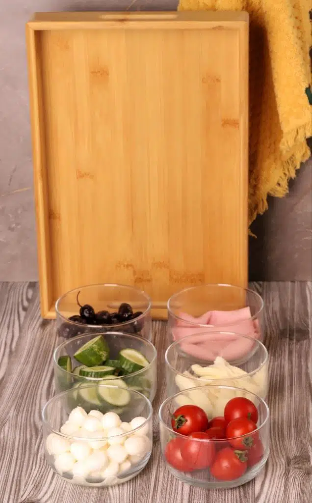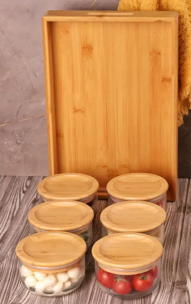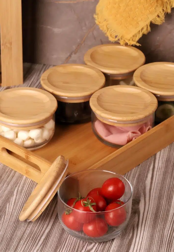 Çok güzel ve sağlam geldi tepsisi de bambu, kapaklar da vakumlu ı, tek sorun tepsiye tam sığmıyor ama sorun edilecek kadar değil