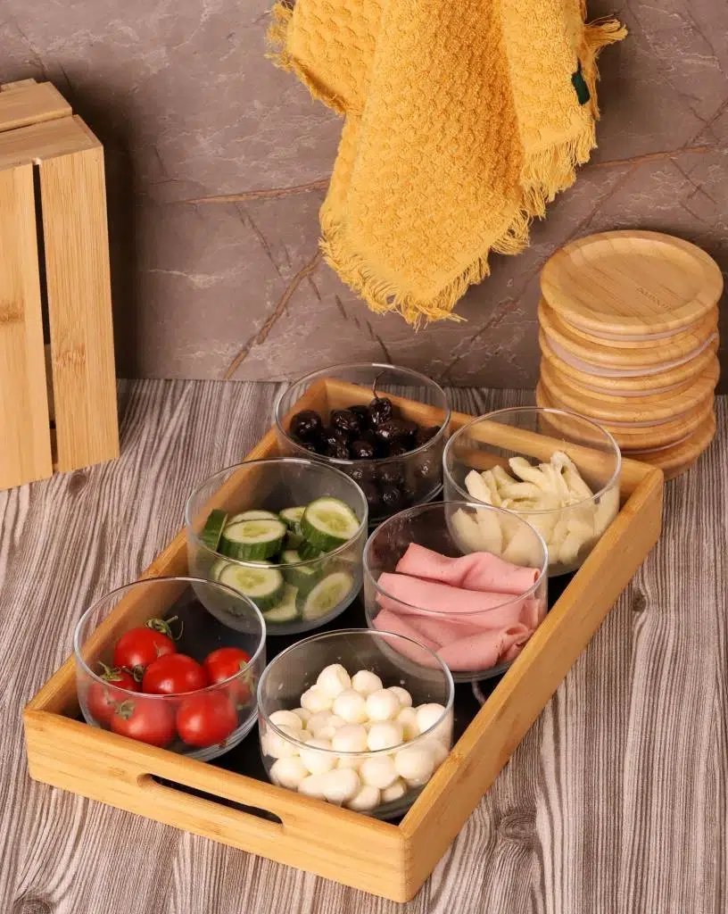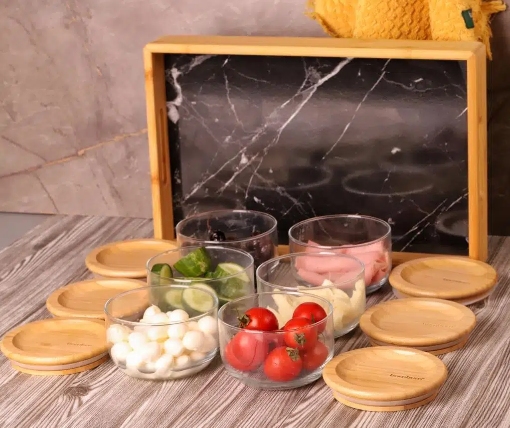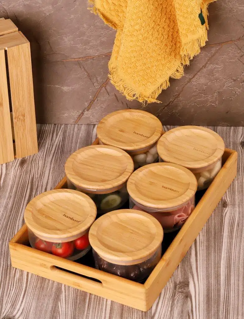 | Etiketler | Bambum Duo 300ml 6'lı Siyah Tepsili Bambu Kapaklı Cam Kahvaltılık |