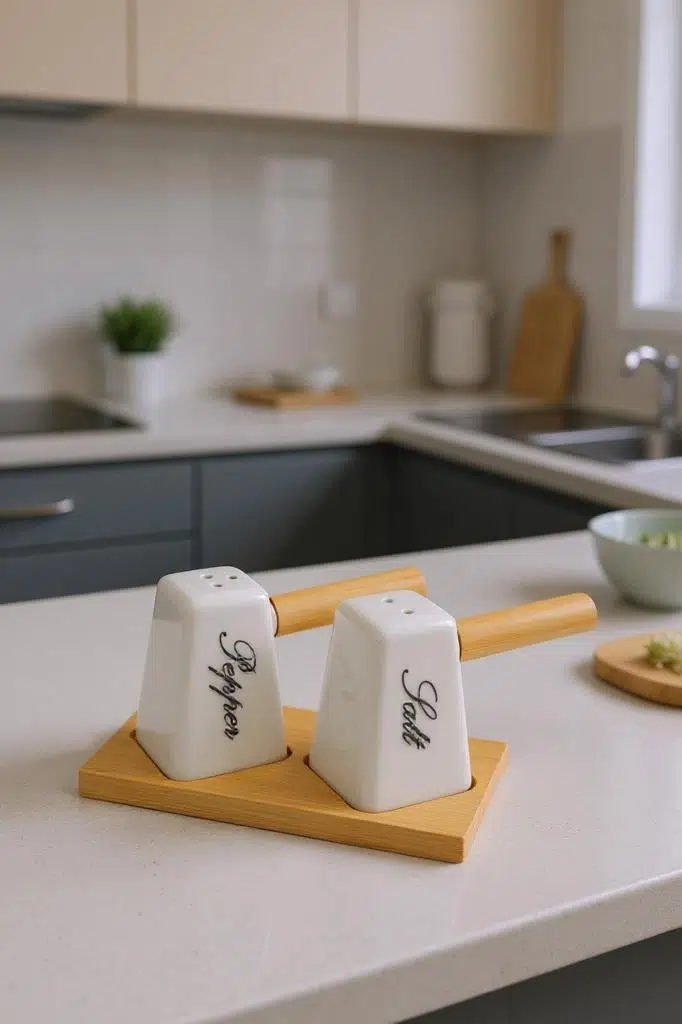 Her Zaman Düzenli: Bambu standı sayesinde dağınıklığı önler, tuzluk ve biberliğinizi her zaman bir arada ve düzenli tutar.