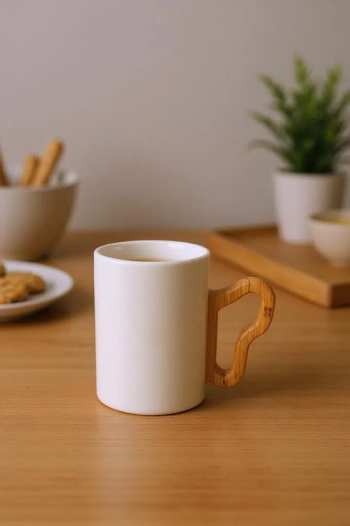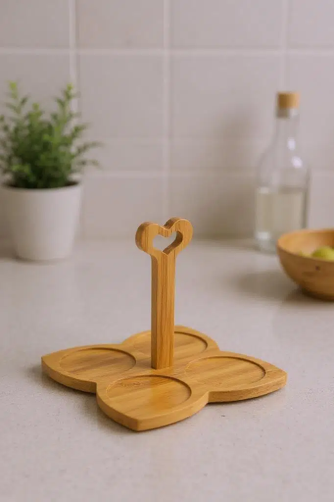 Düzen ve Estetik Bir Arada: Bambu standı, kupalarınızı derli toplu tutarak mutfak tezgahınızda estetik bir görünüm oluşturur.