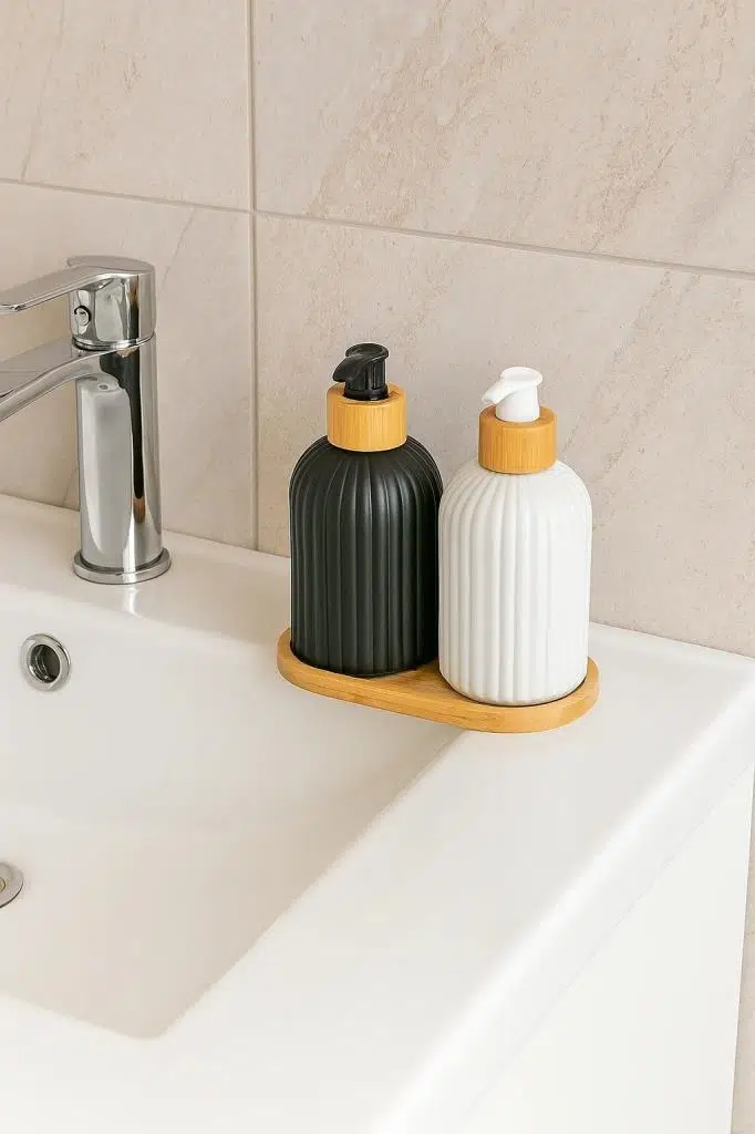 Banyonuzda veya mutfağınızda düzeni ve estetiği bir araya getiren Bambum Kalista 2’li Sıvı Sabunluk Seti, modern tasarımıyla kullanım kolaylığı sağlar. Doğal bambu detaylarıyla hem çevre dostu hem de dekoratif bir seçenektir.