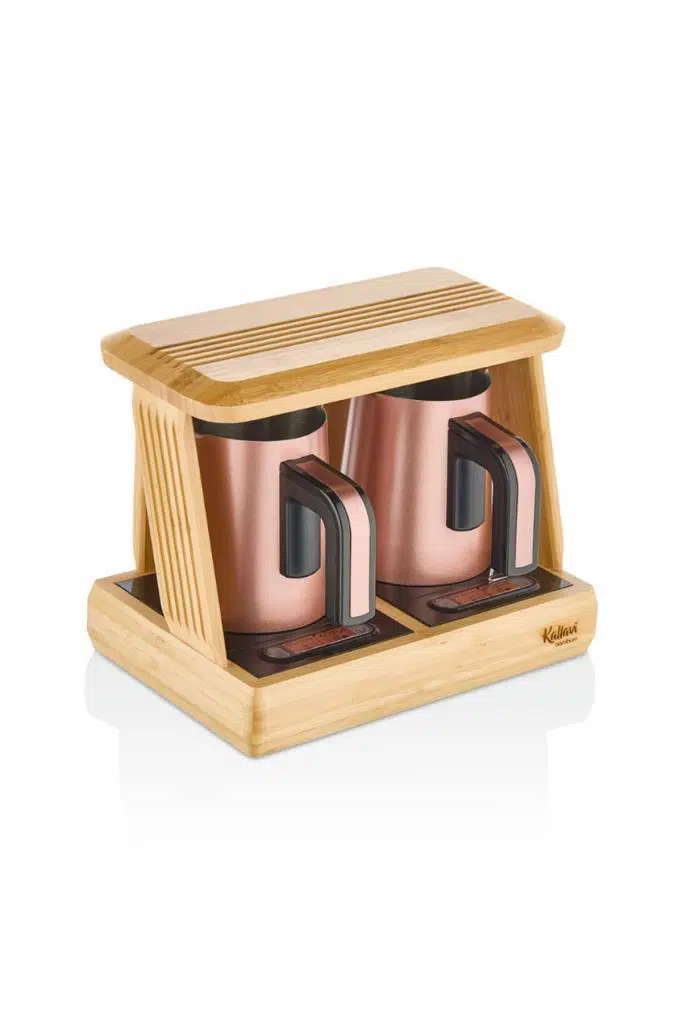 Bambum Kallavi Türk Kahve Makinesi Bronz İkili, kahve keyfinizi bir üst seviyeye taşıyan özel tasarımıyla mutfaklarınıza şıklık katar. Bronz renkli modern tasarımı ve çelik cezvesi ile hem estetik hem de uzun ömürlü kullanım vadeder. Tek seferde 6 fincan kahve hazırlama kapasitesi sayesinde misafirlerinize hızlı ve zahmetsiz ikramlarda bulunabilirsiniz.