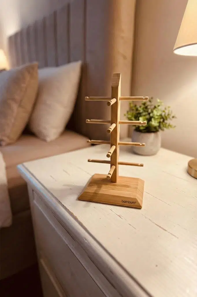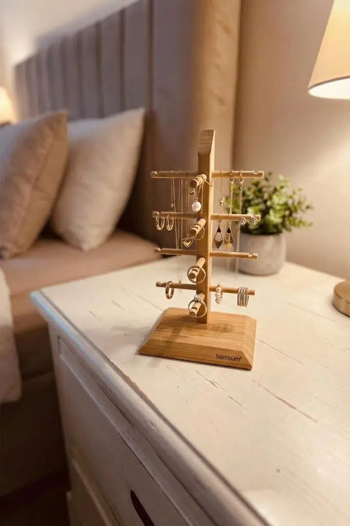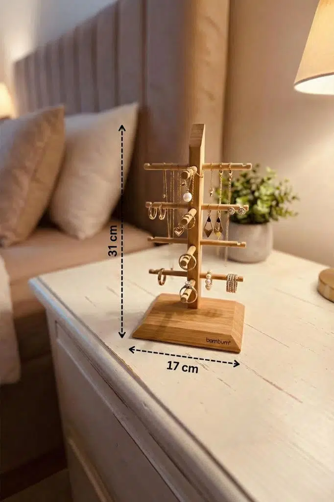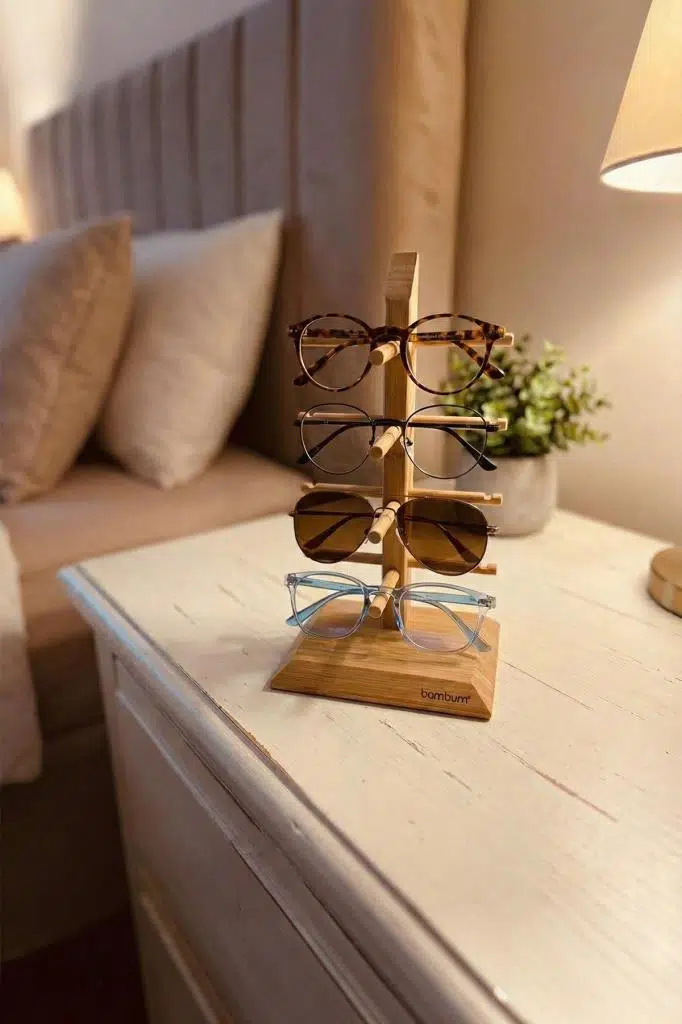 Masanızın üzerindeki dağınıklığa son verin ve aksesuarlarınızı şık bir şekilde sergileyin. Bambum Lezay, çok yönlü tasarımıyla ister 4 adet gözlüğünüzü çizilmeden saklamanız, isterseniz de kolye, bileklik ve yüzük gibi takılarınızı birbirine dolaşmadan düzenlemeniz için tasarlanmıştır. Doğal bambu yapısı, yatak odanıza veya çalışma masanıza sıcak ve dekoratif bir dokunuş katar.