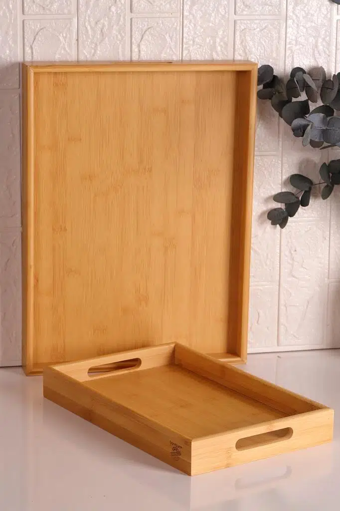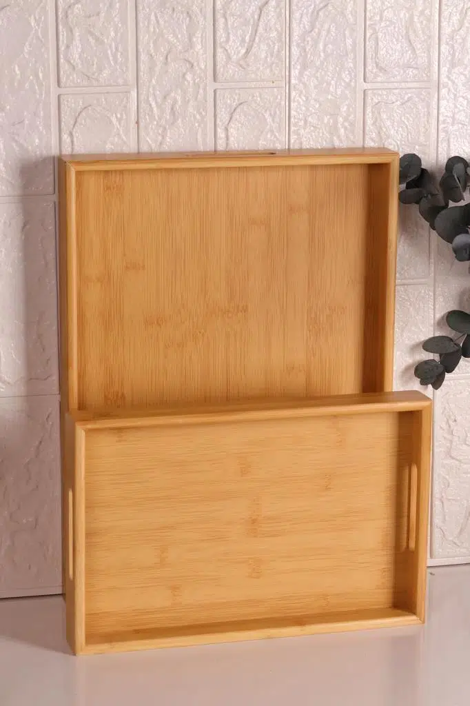 Bambum Marbella tepsi seti, 2’li bambu desenli tepsi, büyük küçük servis tepsisi, şık sunum tabakları, doğal desenli mutfak tepsisi, dekoratif bambu tepsi